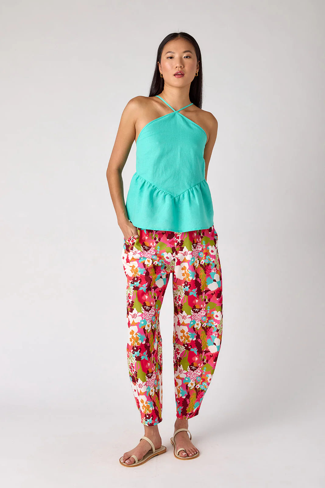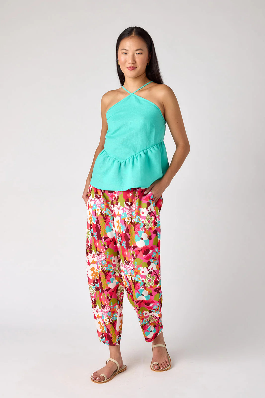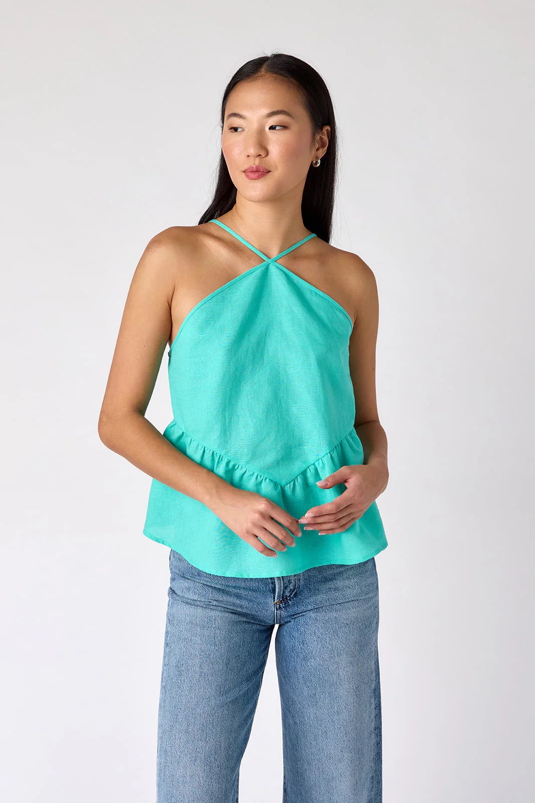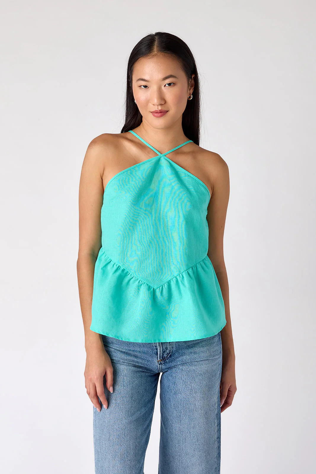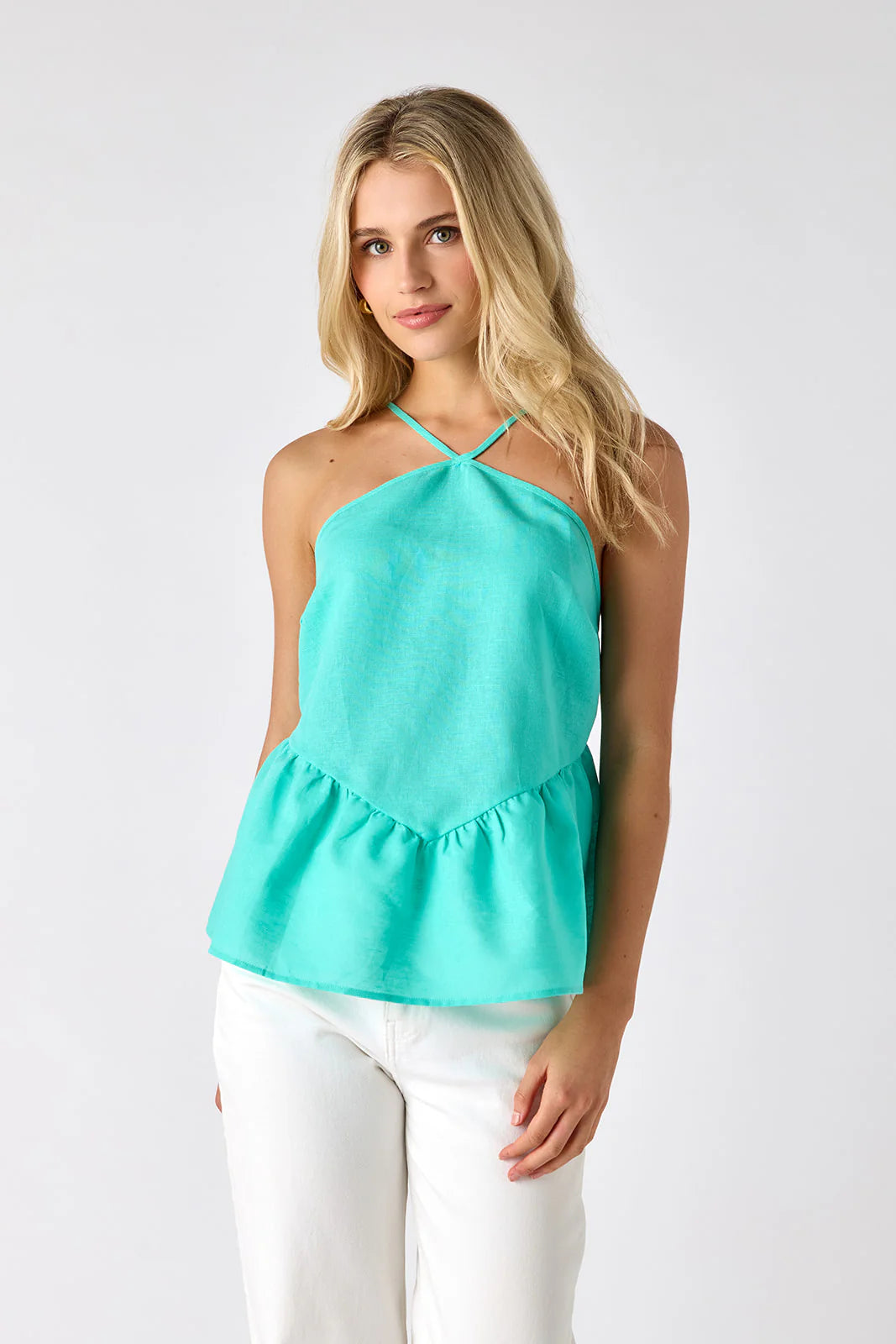 Turn heads in the Milena Tank! This chic halter features flattering flounce details, adjustable straps for the perfect fit, and an elastic back for all day comfort. We love to pair Milena with our Sara Short and Bernie Pants!