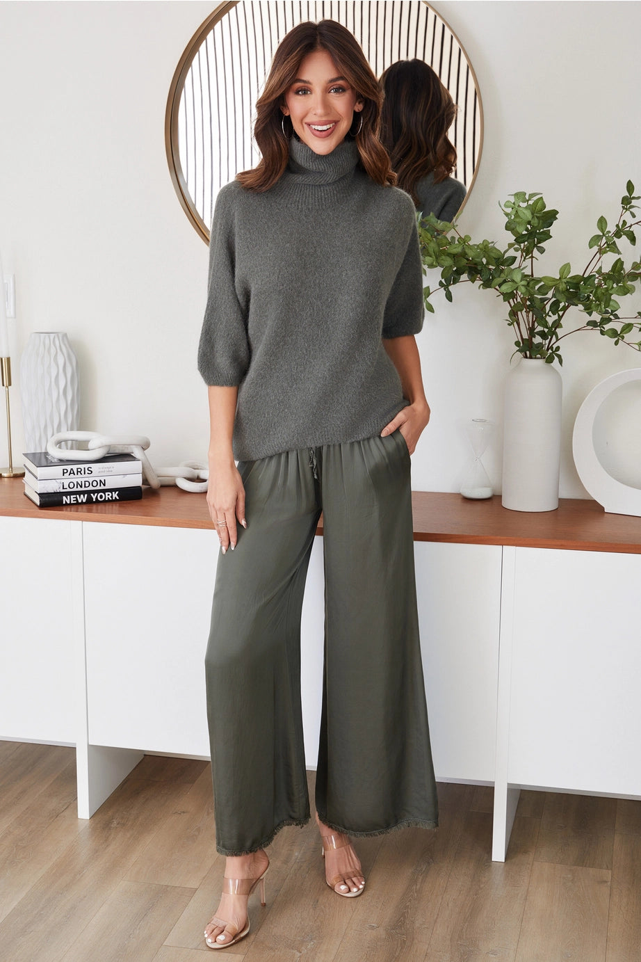 The viscose drawstring waist distressed hem palazzo pant features a drawstring waistband and distressed hem for a breezy casual look. The lightweight fabric ensures maximum comfort and mobility - perfect for everyday wear.