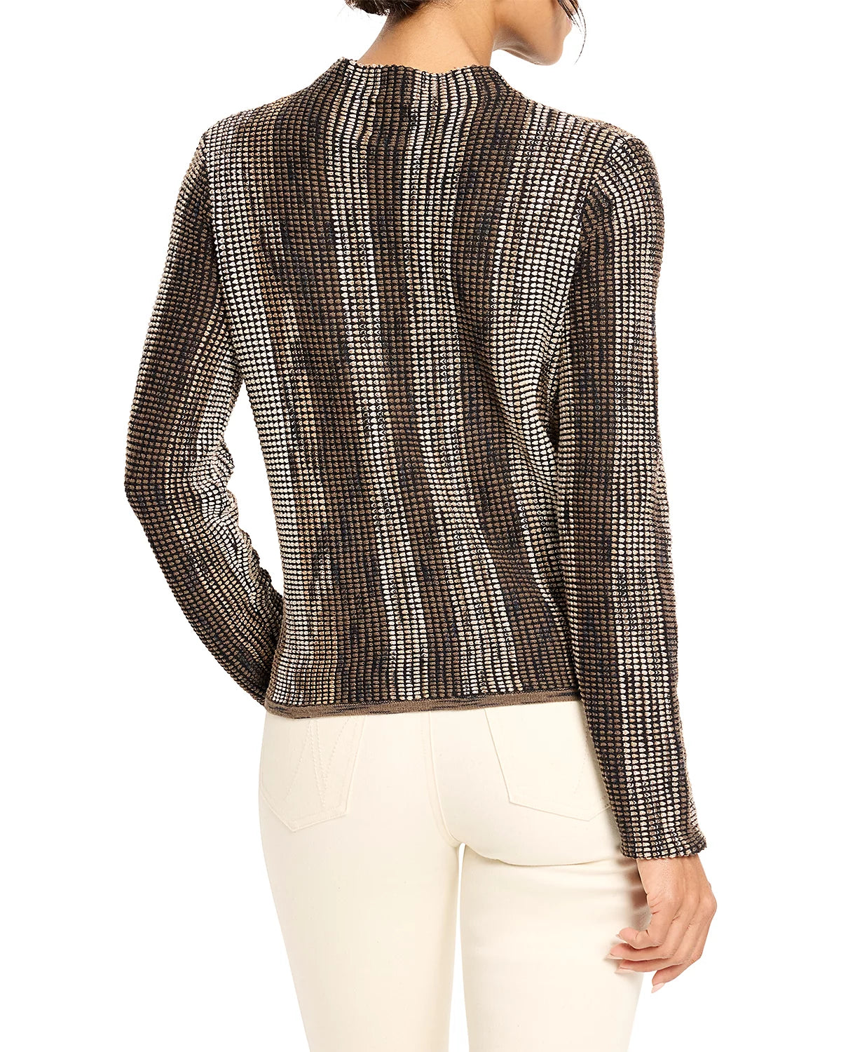 Knit experts went all-in here: combining poppy pixel-knit technique and five different kinds of space-dye yarn to create the stunningly unique mélange of color and pattern on this NIC+ZOE sweater. The funnel neck finish adds one last touch.