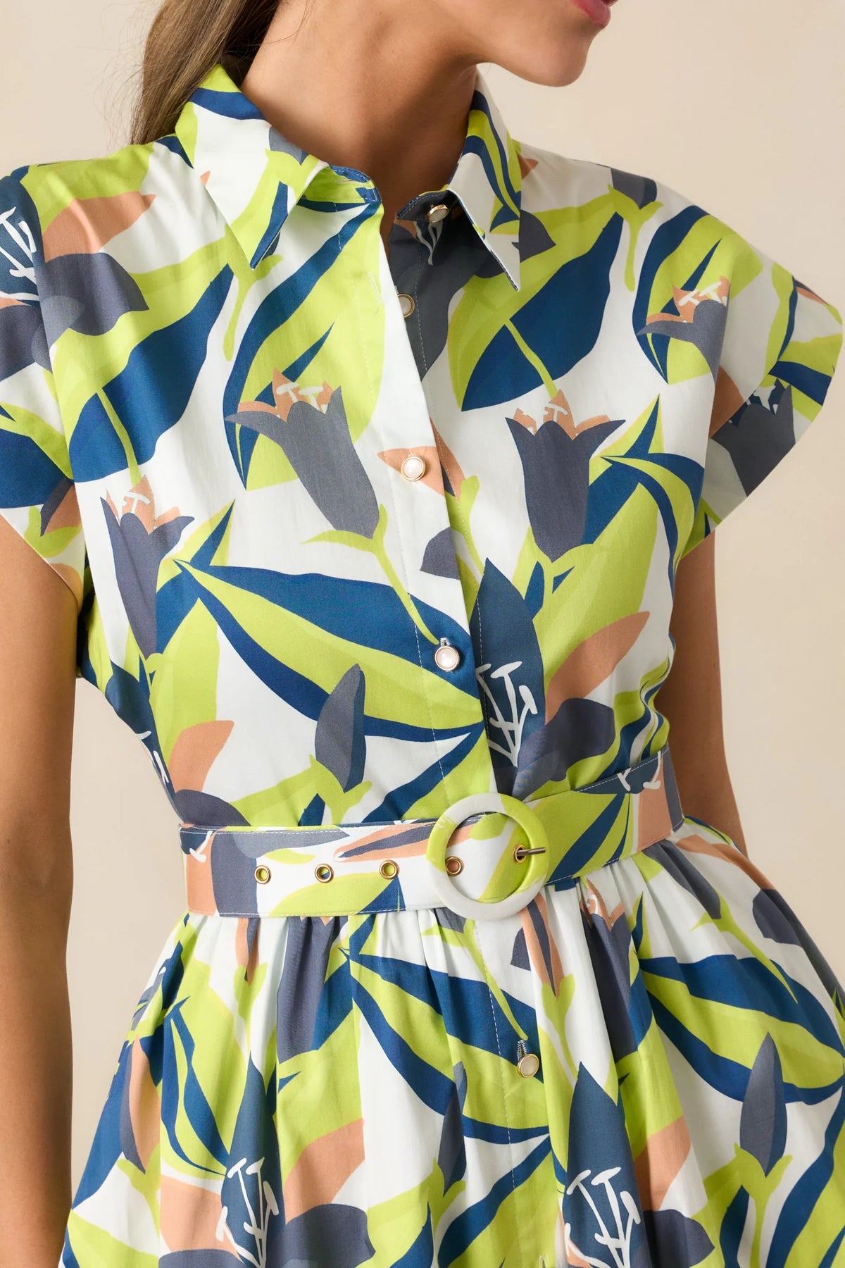 The Prosperina Jocelyn Multi Floral Print Cotton Maxi Dress has an easy elegance that never goes out of style. Its classic charm and thoughtful details make it a piece you’ll love for years to come. This maxi dress features an exclusive Prosperina Graphic Garden multicolor floral print, a collared neckline, cuffed short sleeves, functional button front, full white lining, optional adjustable belt, and functional pockets.