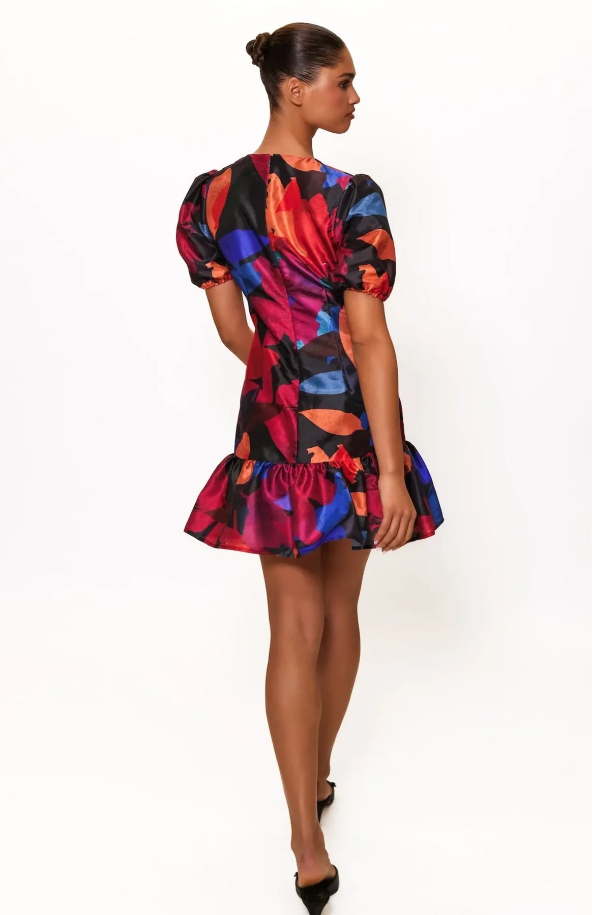 Elevate your style with the Rayan Dress, featuring elegant puff sleeves and a flattering drop waist silhouette. The vibrant floral print adds a splash of color, while the delicate ruffle bottom creates graceful movement. Perfect for occasions where sophistication meets charm.