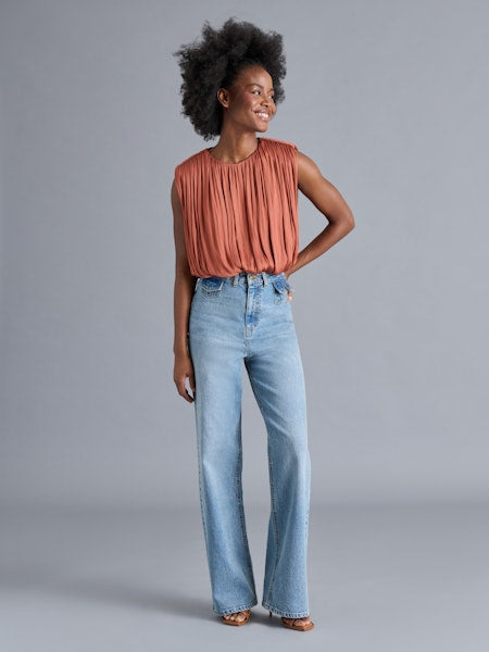 TIA RIBBED CREW NECK SWEATSHIRT WITH SMOCKED CUFFS