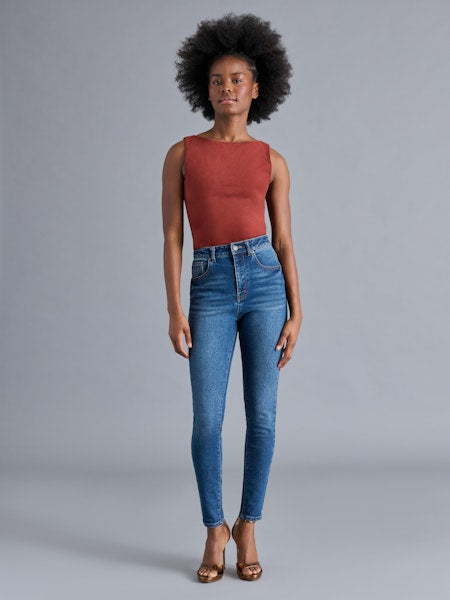 LARA RIBBED MOCK NECK WITH SNAP BACK