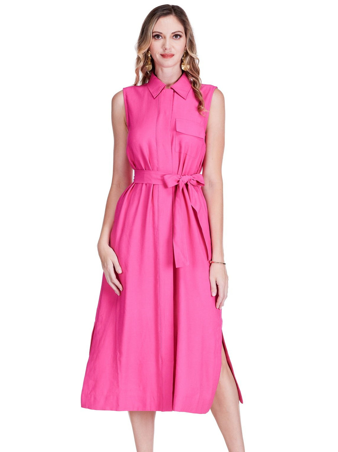 POCKET SLIT MIDI SHIRTDRESS