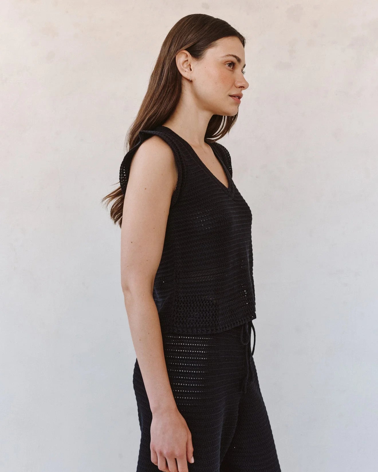 SHORT SLEEVE V-NECK CROCHET TOP