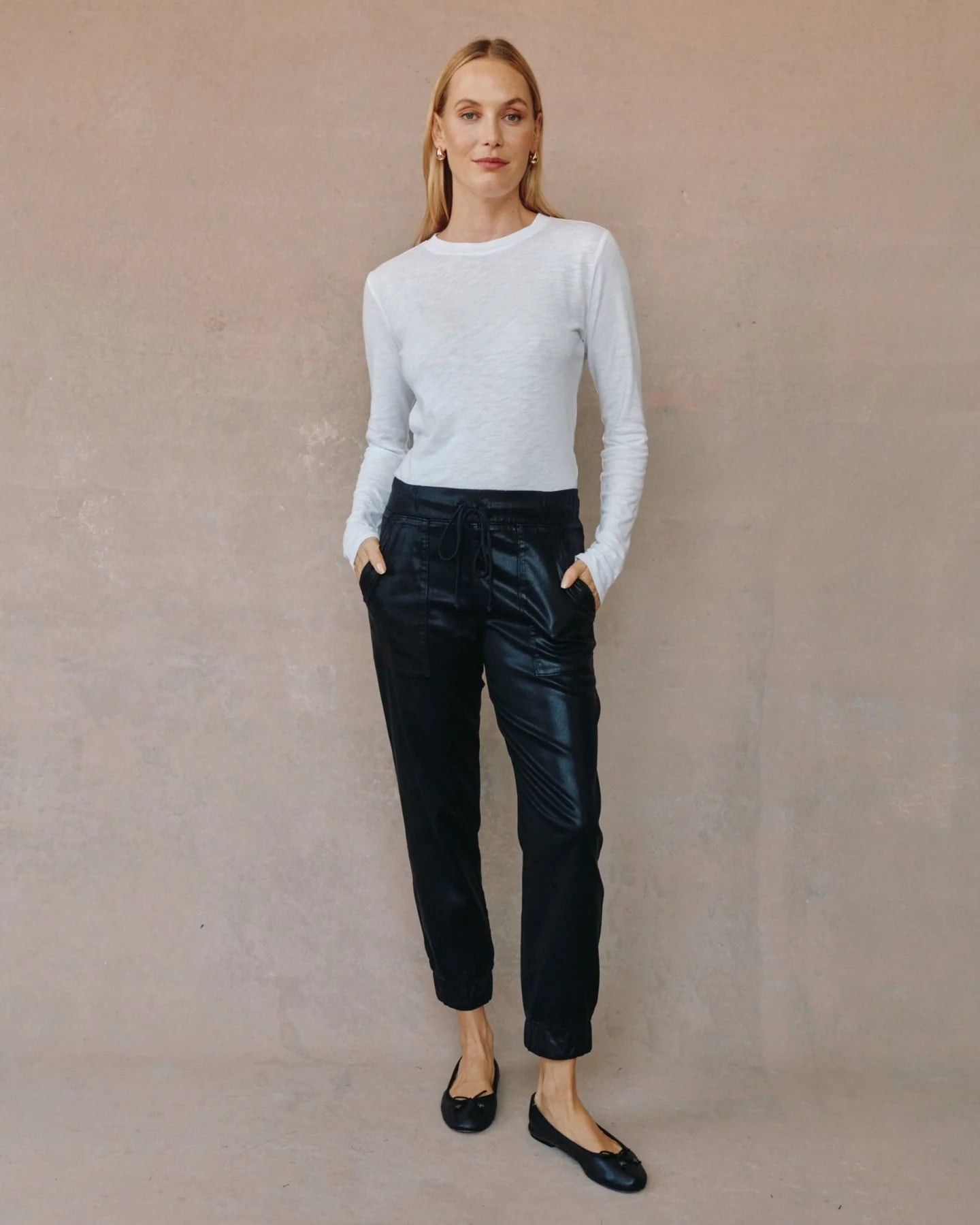 Our faux leather pocket joggers are not your ordinary joggers. These will become your new favorite faux leather pants! They are super comfortable and chic. Dress them down with sneakers or elevate them with heels or boots. The design features a drawstring waistband, side pockets and back pockets and an overall relaxed fit.