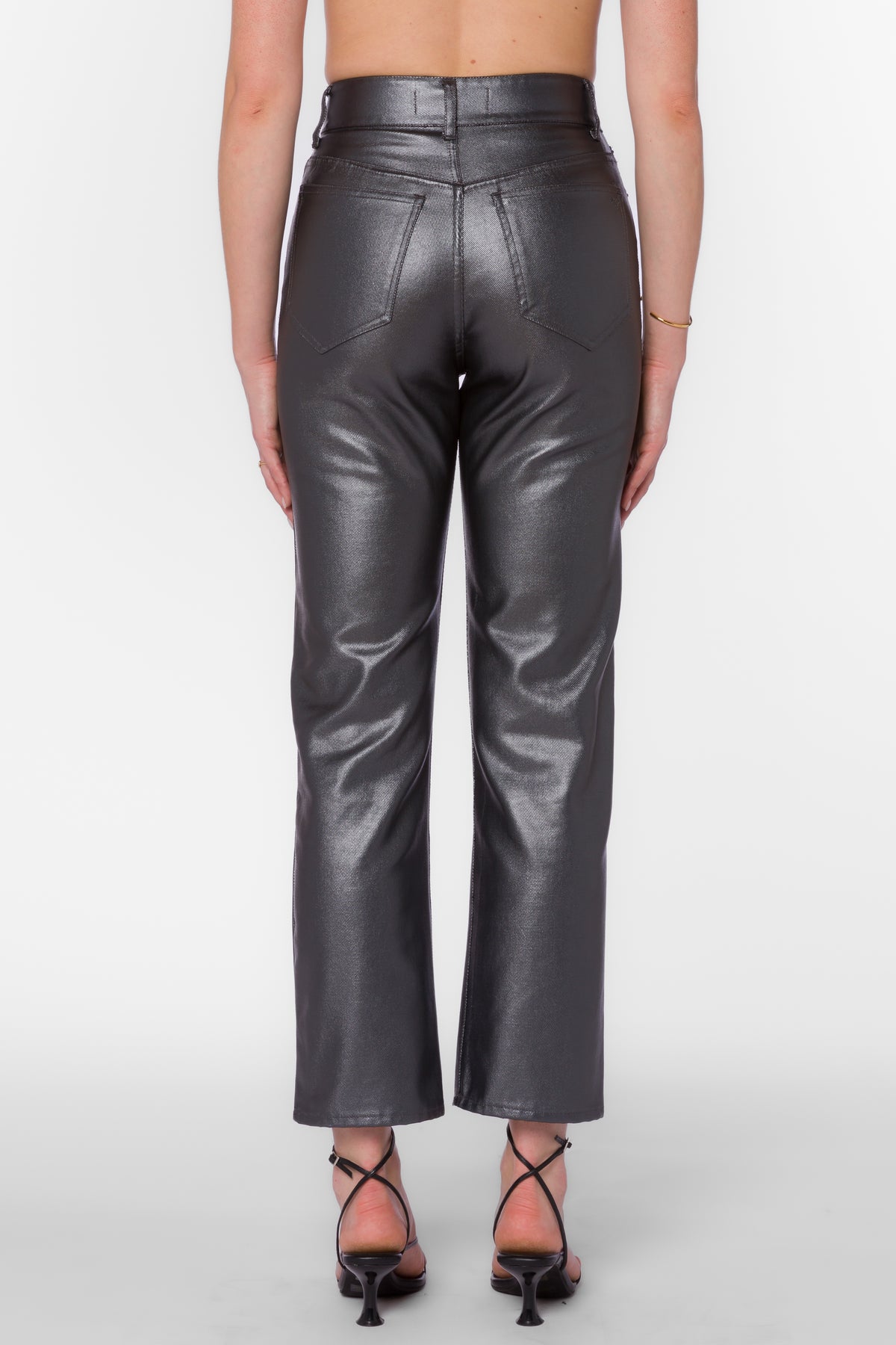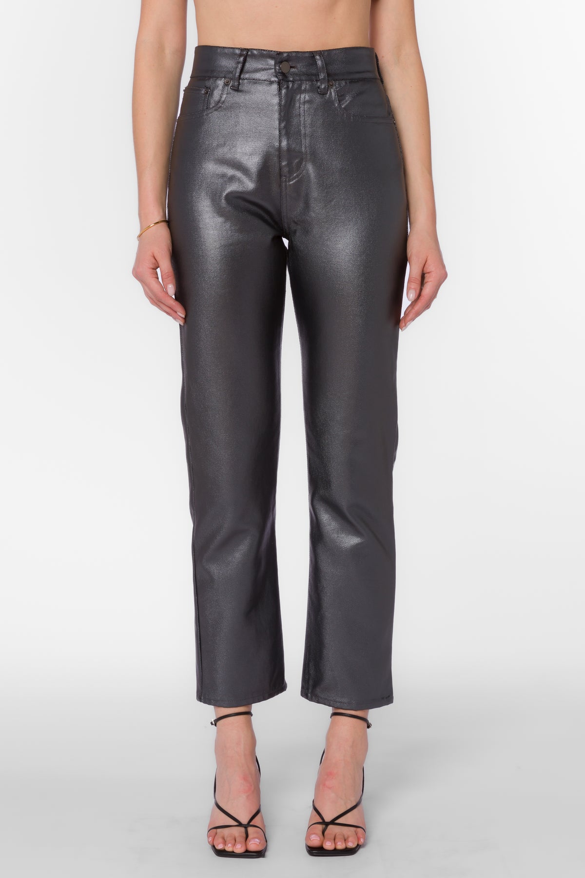 Indulge in luxury with the Polly Coated Mid-rise Straight Leg Jeans. The coated finish adds a touch of sophistication, while the straight leg and cropped design provide a flattering silhouette. The metallic sheen elevates these jeans to a premium level, making them a must-have for any fashion-forward individual. Step out in style and let your legs shine with these exclusive jeans.
