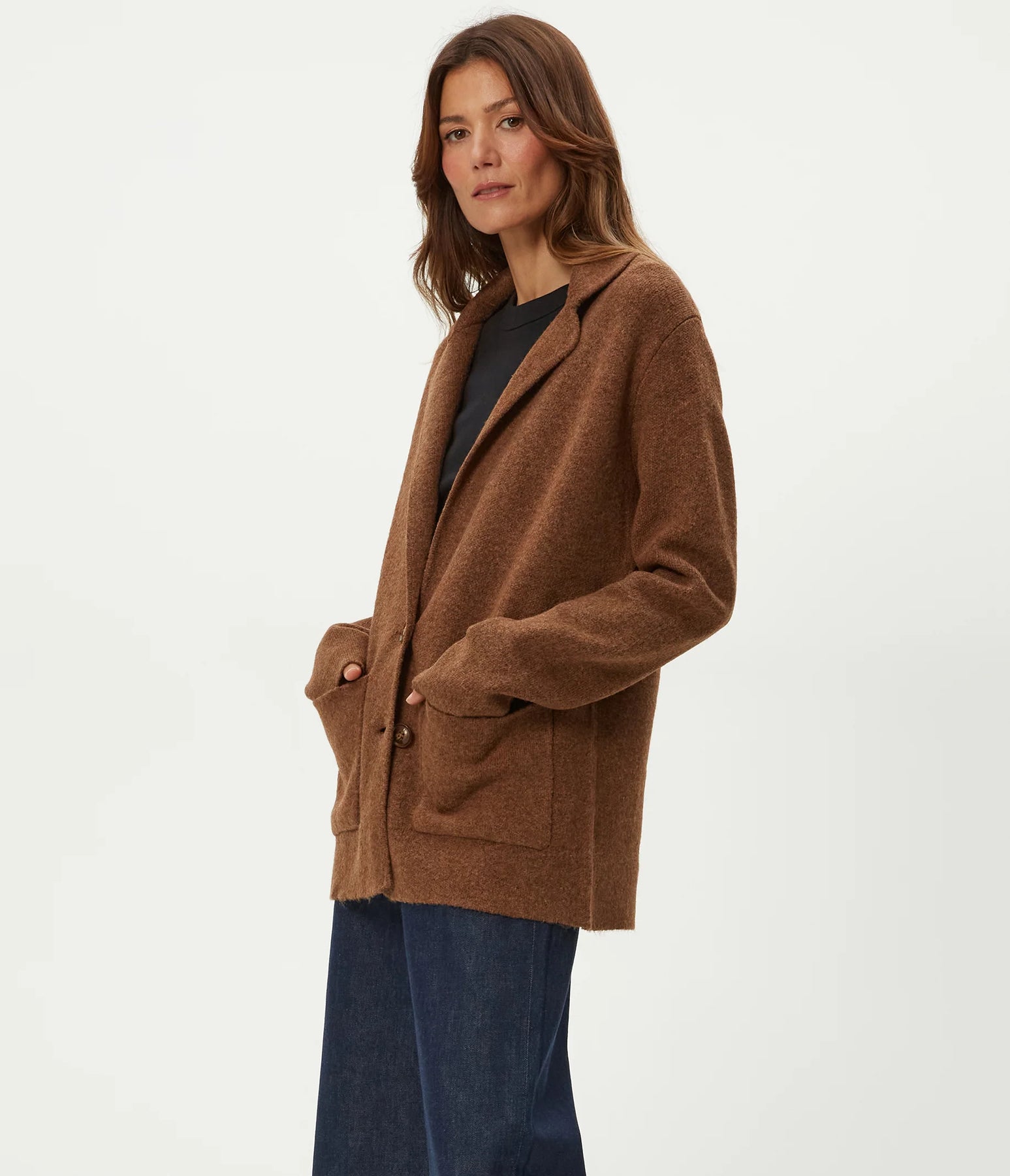 The Diana Knit Blazer combines refined style with comfort, crafted from a soft blend of polyester, acrylic, and elastane for a subtle stretch. Its classic collared neckline and button-front design offer timeless elegance, while front patch pockets add practical charm. Ideal for layering, this blazer is best cared for with gentle hand washing to preserve its quality. Elevate your wardrobe with a piece that’s both polished and effortlessly wearable.