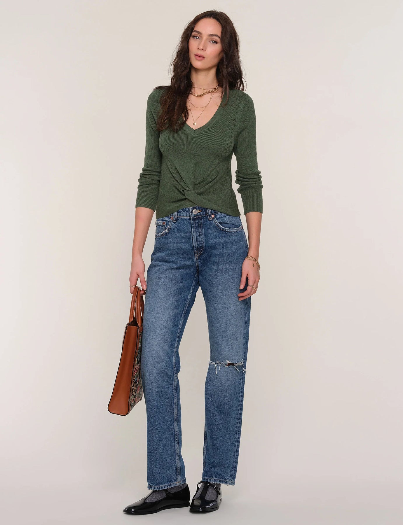 The Zazie Top redefines casual elegance with its soft melange knit fabric and relaxed silhouette. Featuring a refined twist-front detail, this versatile piece effortlessly elevates your wardrobe. Perfectly suited for pairing with denim, trousers, shorts, or skirts, it offers a sophisticated yet comfortable style for any occasion.