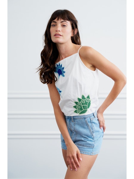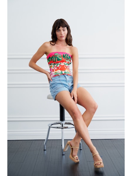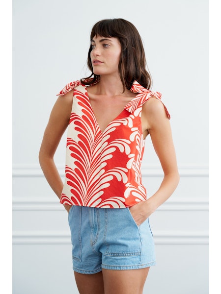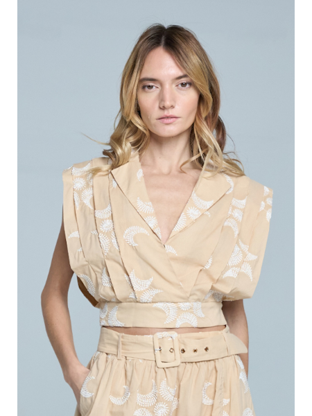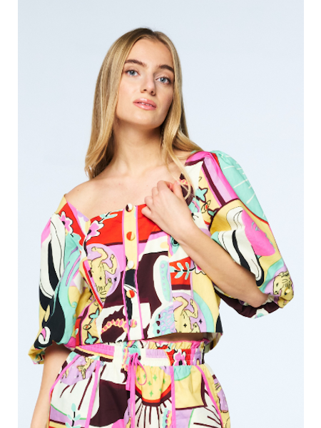 BUBBLE SLEEVE BUTTON DOWN PRINTED COTTON TOP