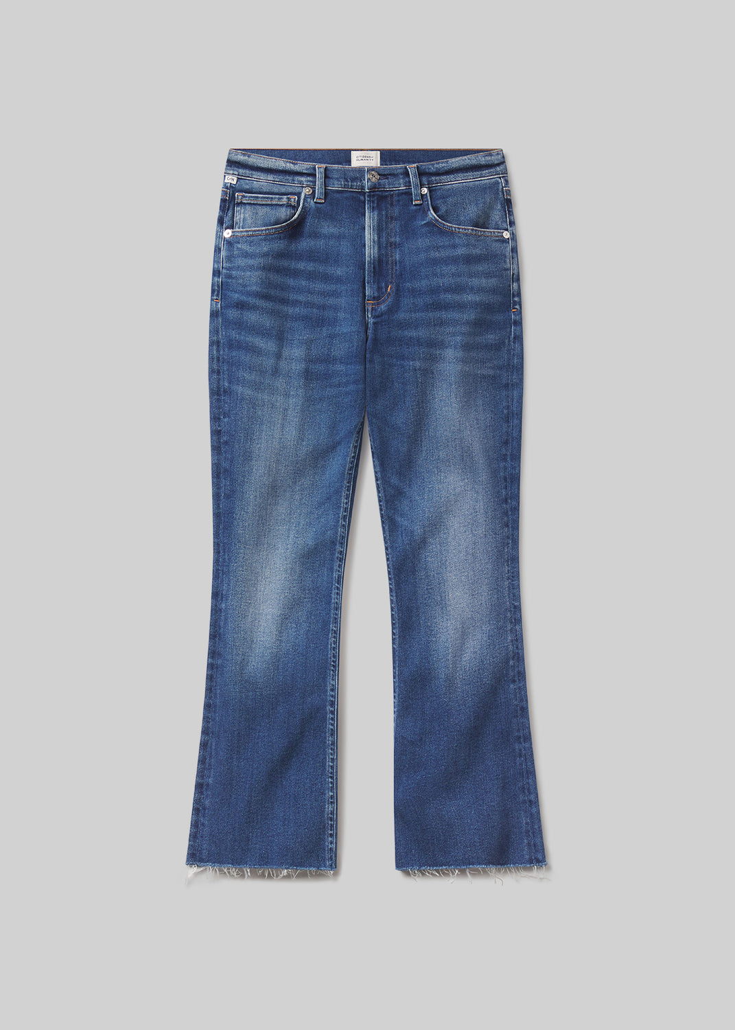 The Isola is a mid-rise cropped bootcut designed for everyday ease. Crafted from soft stretch denim with a lightweight feel, it offers a flattering fit with lasting comfort. The Ambry wash—a medium-to-dark indigo with subtle fading and whiskering—adds a polished, lived-in finish. Perfect with everything from heels to sneakers.