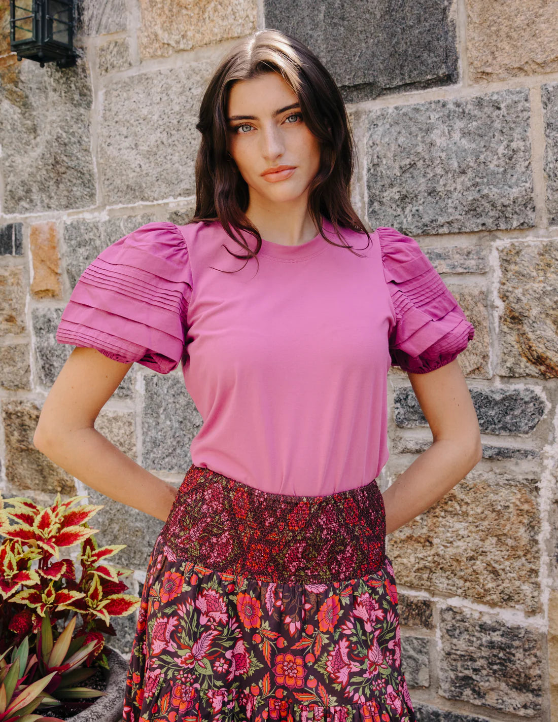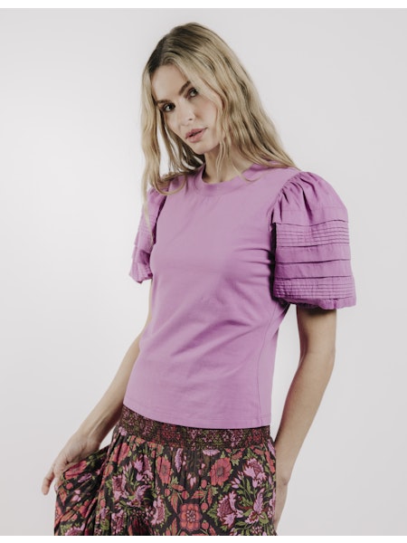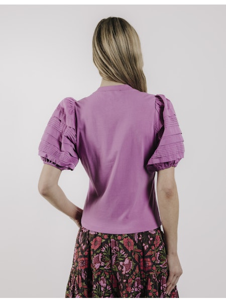 The Dylan Tee elevates the classic t-shirt with its sculptural pintuck puff sleeves, adding a refined and artistic touch. Its vibrant color enhances any outfit, making it a sophisticated choice for those seeking a statement piece that balances everyday comfort with distinctive style.