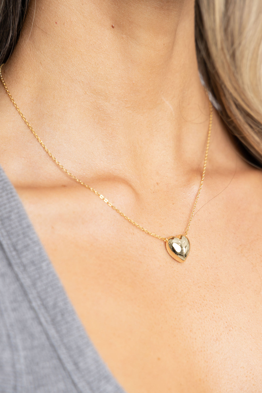 The Brianna Heart Necklace boasts a radiant gold heart pendant that captures the essence of love and adoration. Its simple yet elegant design is sure to add a touch of sweetness to any outfit. Show your love with this charming necklace.