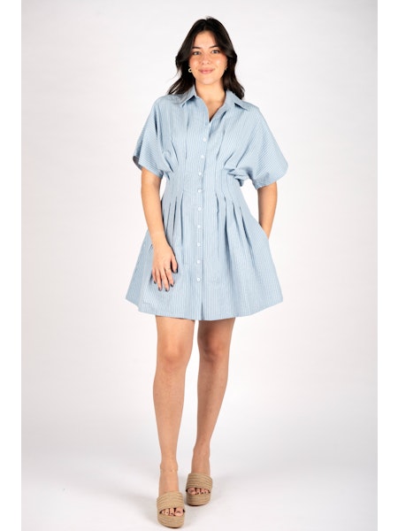LONG SLEEVE SHIRRED SHIRT DRESS