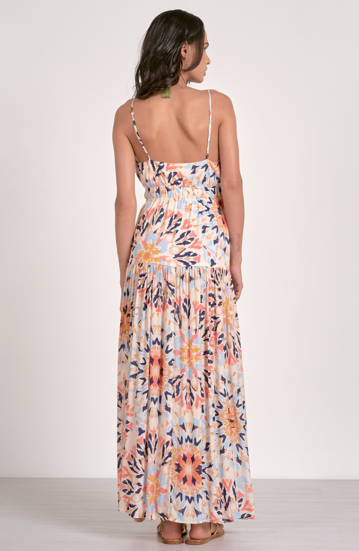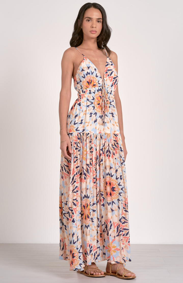 Indulge in elegance with our exclusive V-NECK MAXI DRESS. Featuring a sophisticated V-neck design and a beautiful printed pattern, this sleeveless dress exudes luxury and style. Upgrade your wardrobe with this must-have statement piece.
