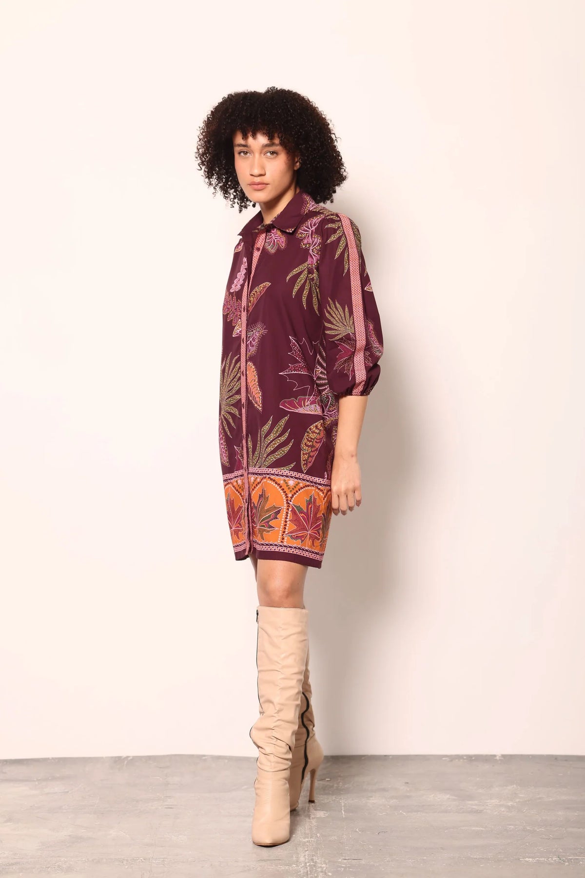 The Ava Dress combines timeless elegance with contemporary flair. This collared mini dress features three-quarter sleeves and a flowing silhouette crafted from 100% cotton poplin for breathable comfort. The bold, colorful print makes an effortless statement, whether styled casually or dressed up for an evening out. A versatile piece that transitions seamlessly from day to night.