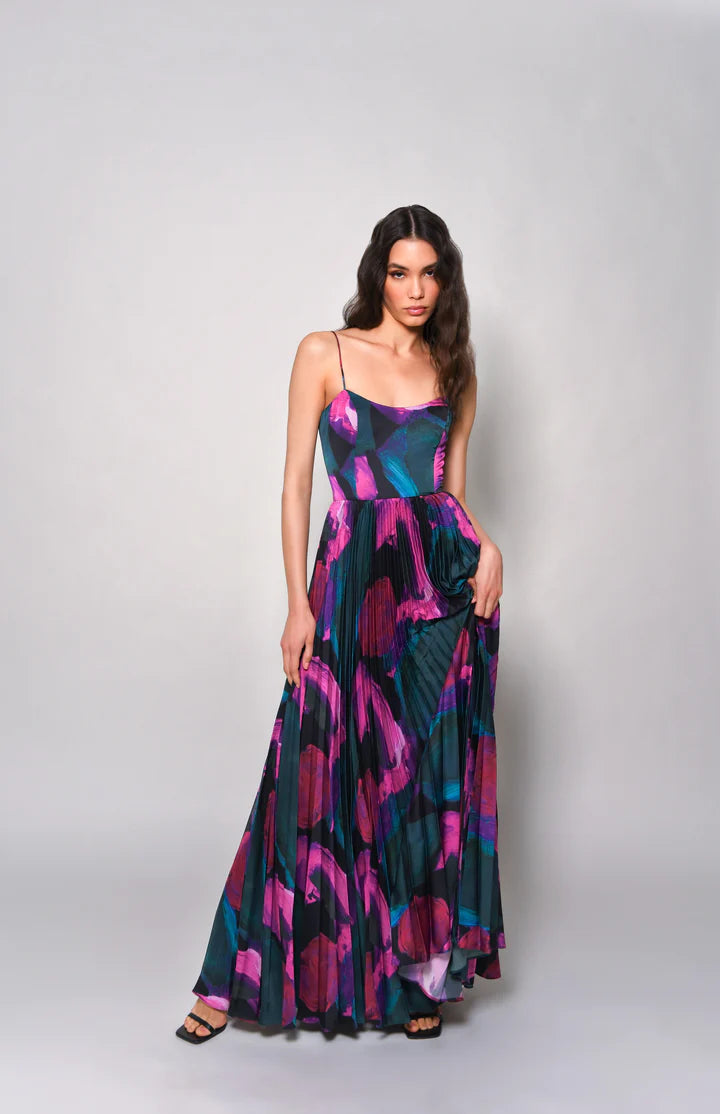 FETE VEGAN LEATHER PLEATED SKIRT MAXI DRESS