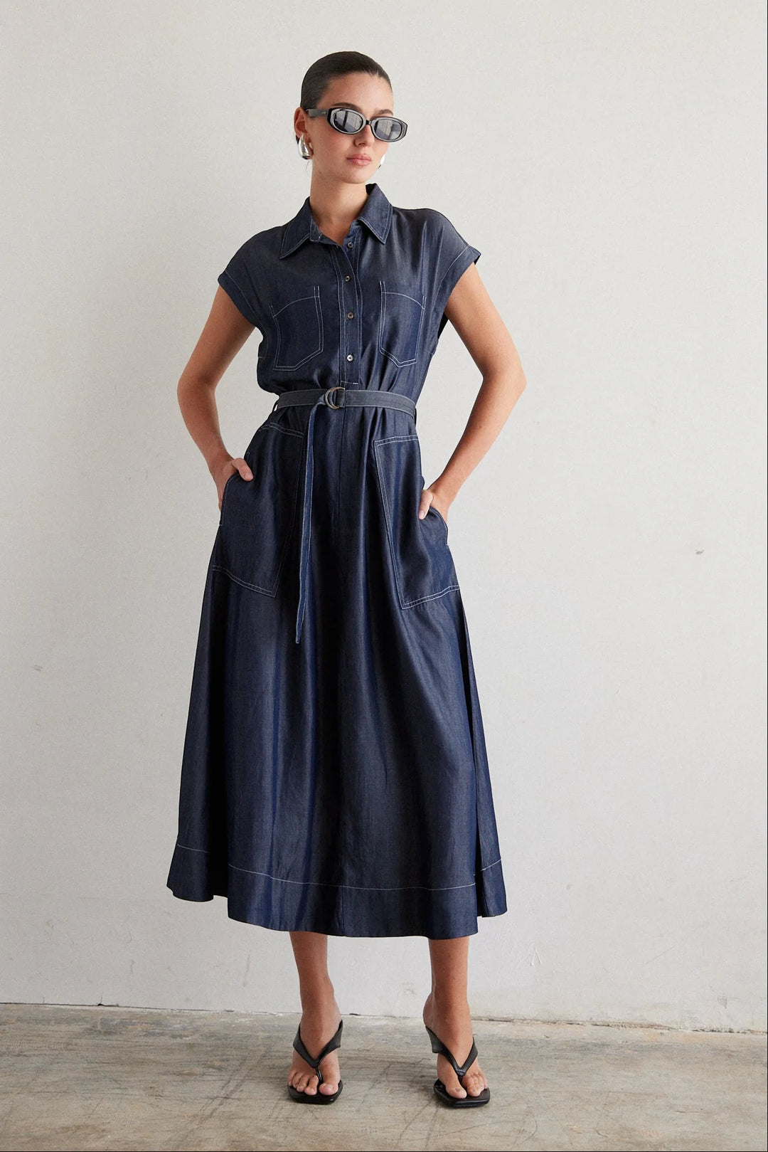 STITCH FRONT PLEATED DETAIL DRESS