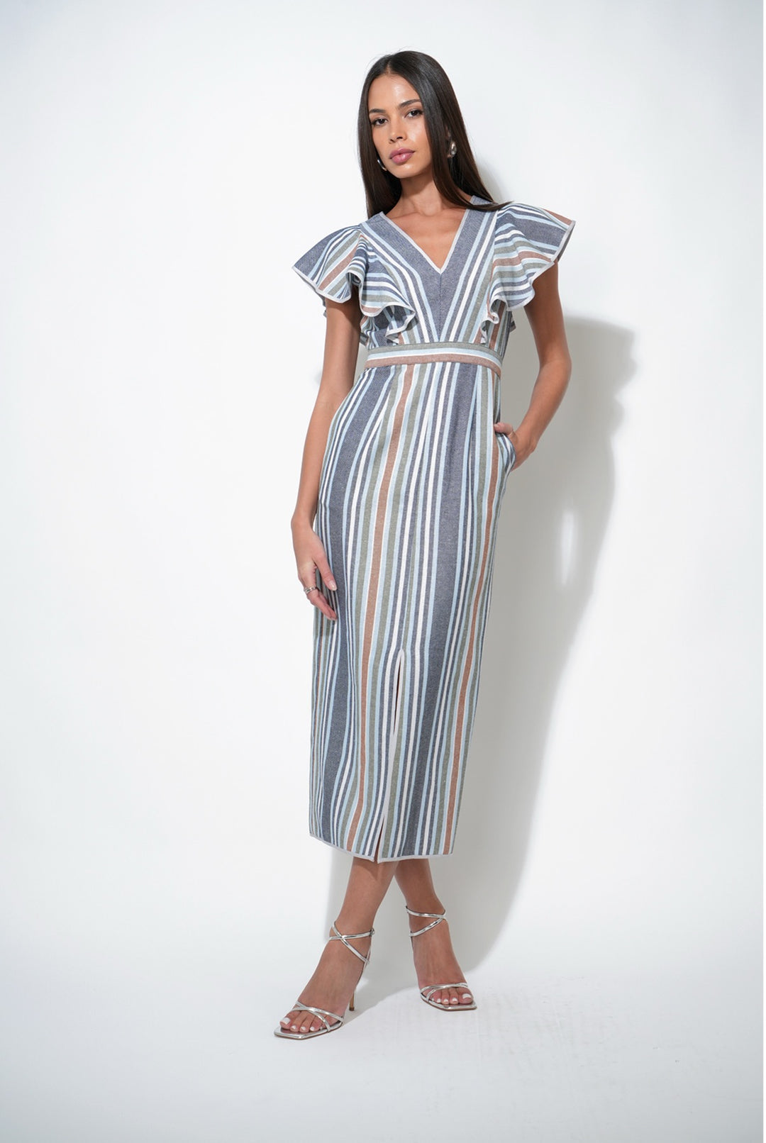 ETTA STRIPE FLUTTER SLEEVE MAXI DRESS