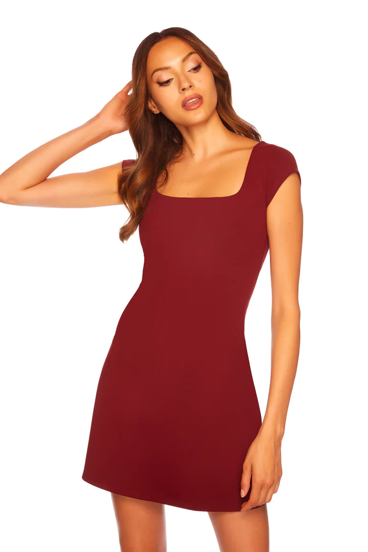 SQUARE NECK PU DRESS