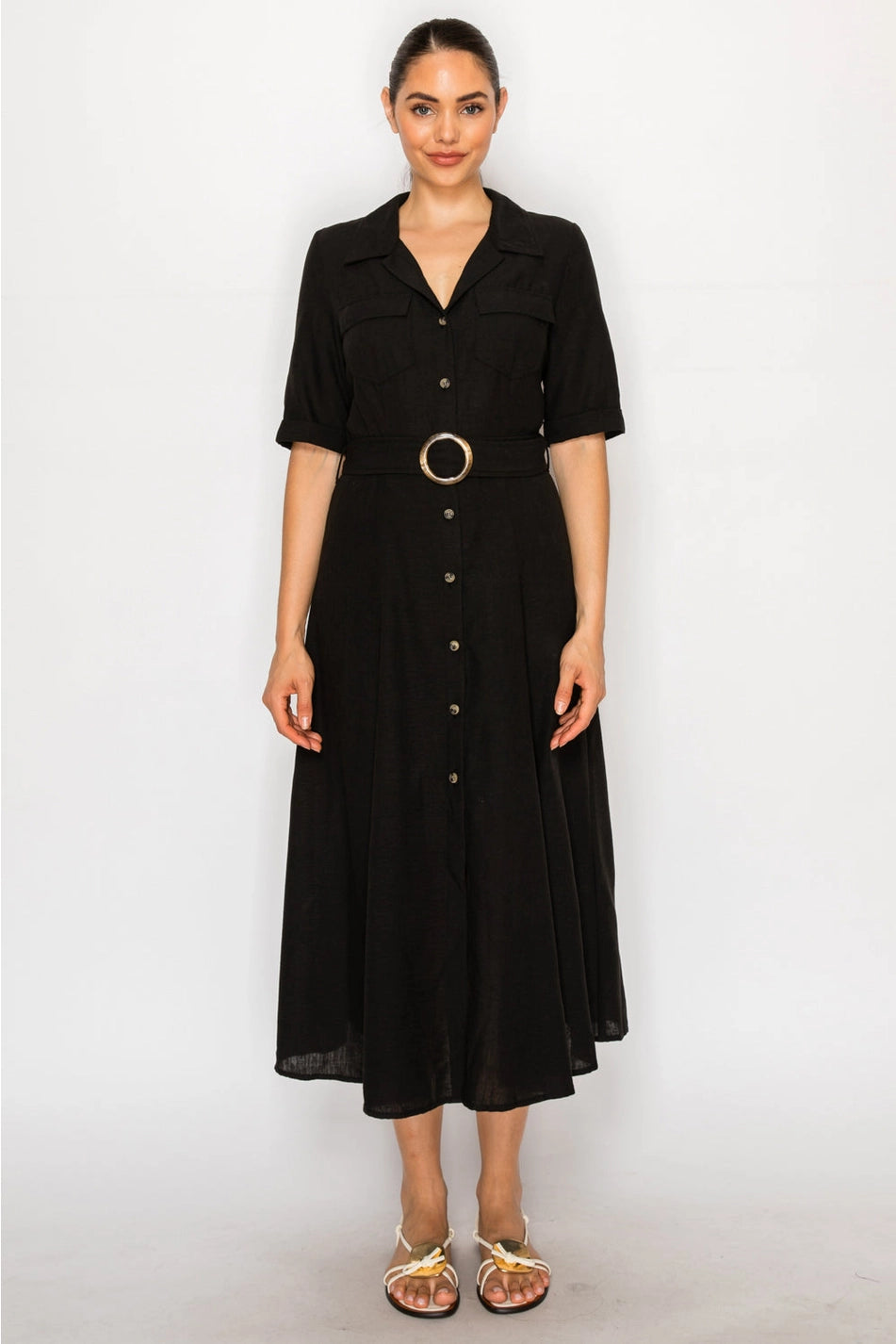BLACK LINEN SHIRT DRESS