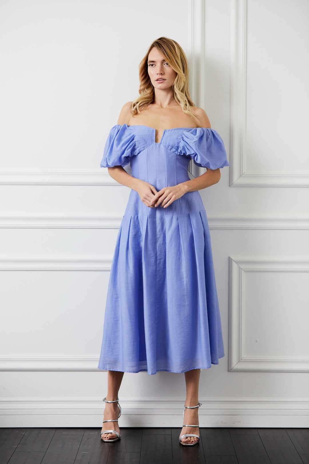 LOTTIE OVERSIZED PUFF SLEEVE OFF-SHOULDER MIDI DRESS