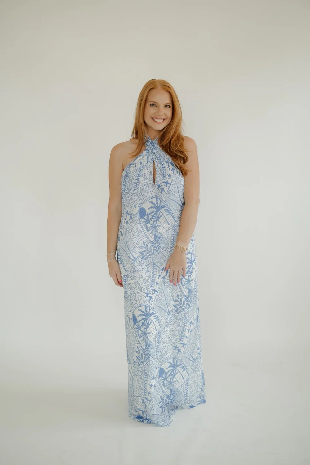 DOTTY PALMS BOAT NECK BIANCA DRESS