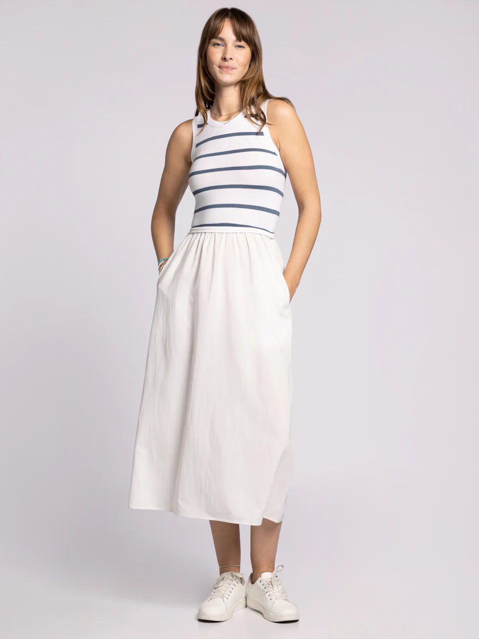 STRIPE BUTTON DOWN MAXI DRESS WITH POCKETS