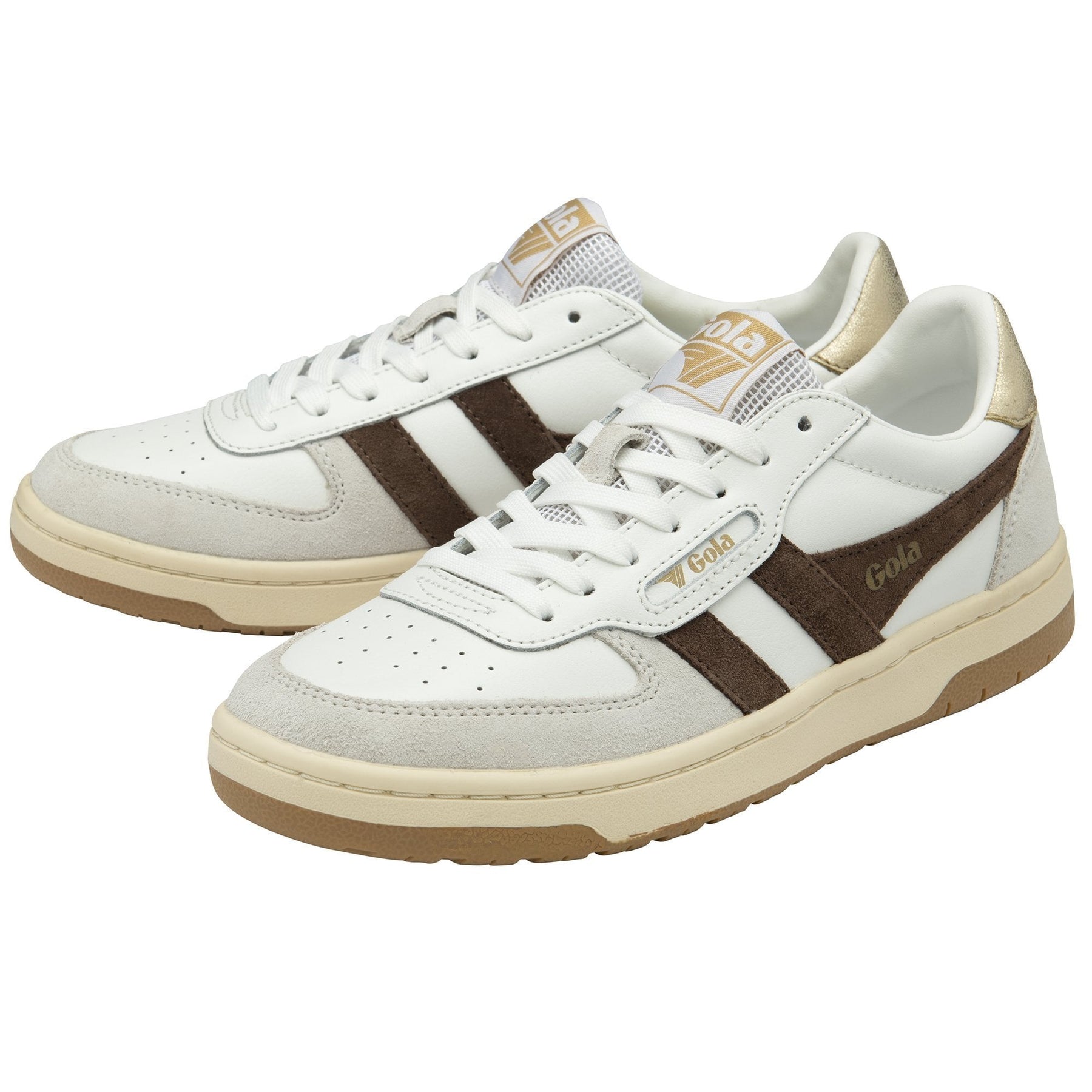 A new addition to the Gola Classics collection, Hawk is court-sport inspired. This timeless sneaker silhouette for women comes in a combination of leather, suede and mesh in white/dark brown/gold and light grey and is complemented with a two colour cup sole, the understated combination translates as a ‘relaxed ‘80s’ sneaker giving an easy old skool vibe. Wear with loose denim or your fave midi skirt.