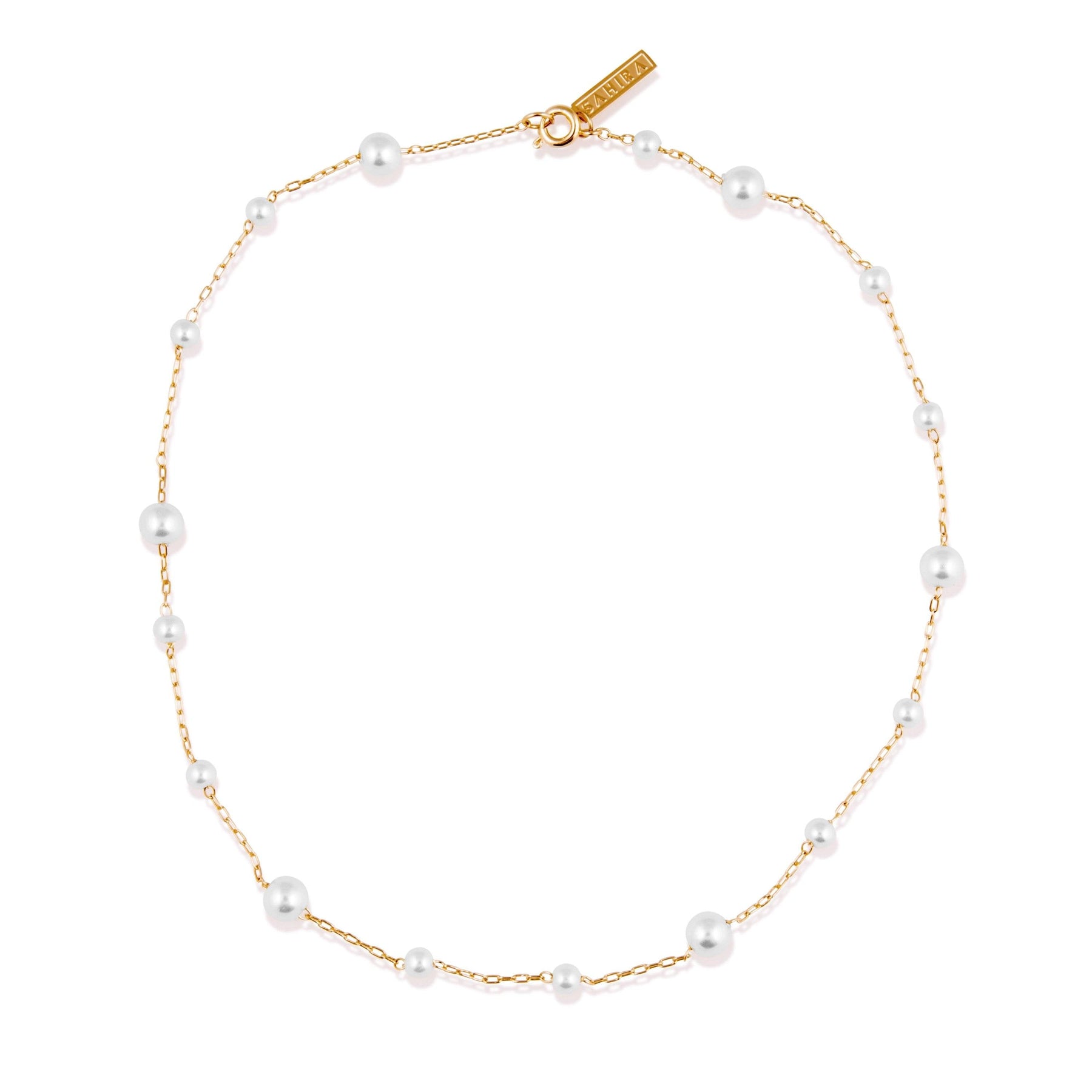 This gorgeous choker is perfect for everyday wear. The pearls on a very thin, dainty 14k gold filled chain.