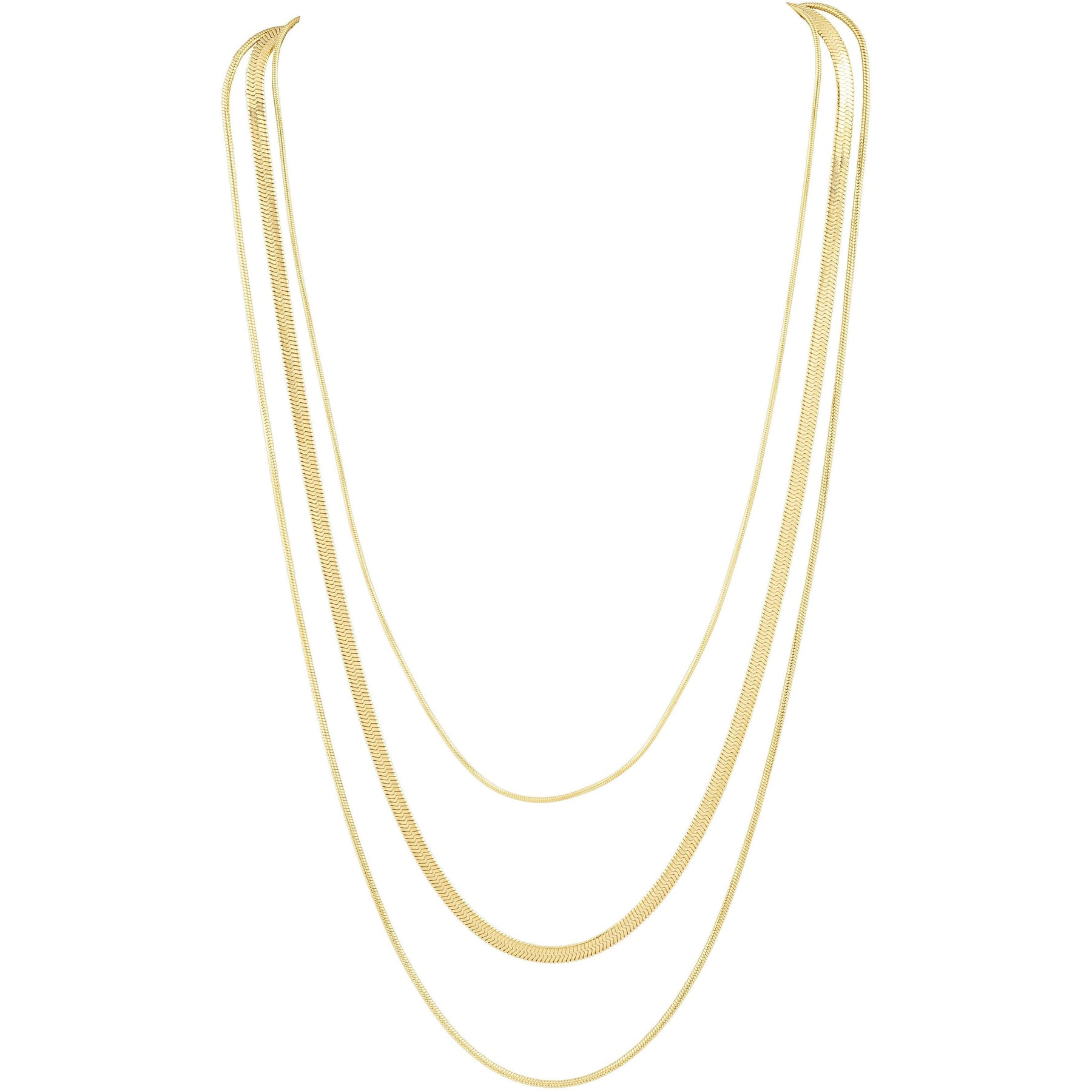Multi snake chain necklace that provides the perfect layered look!