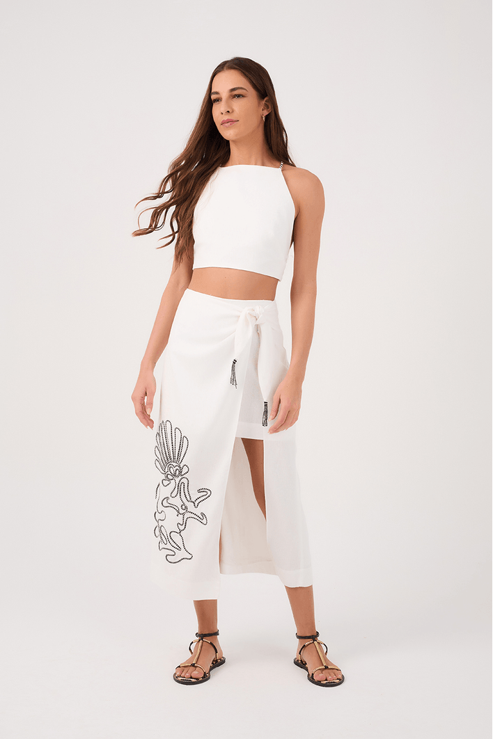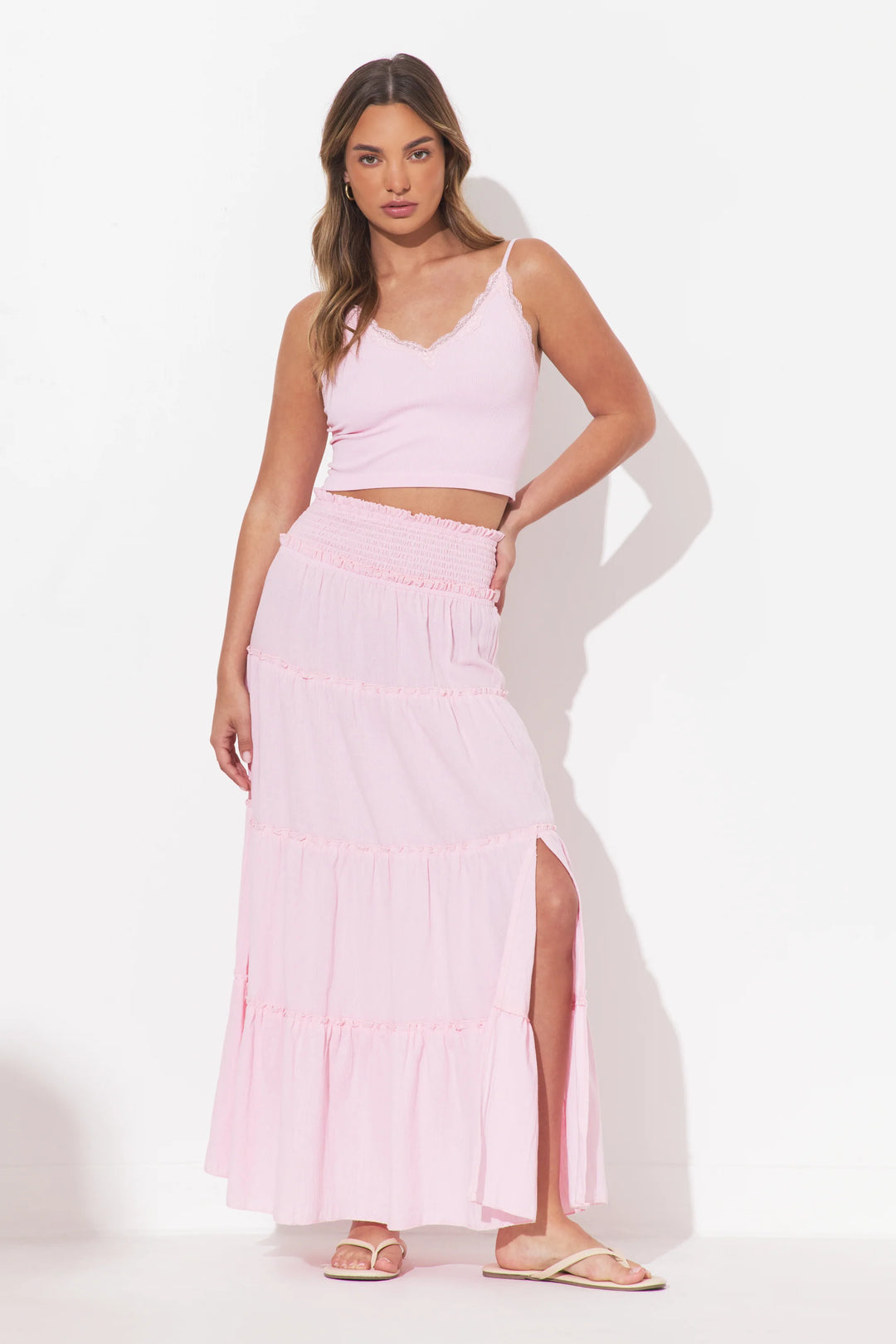 HAWAIIAN PRINT TIERED LINEN MAXI SKIRT