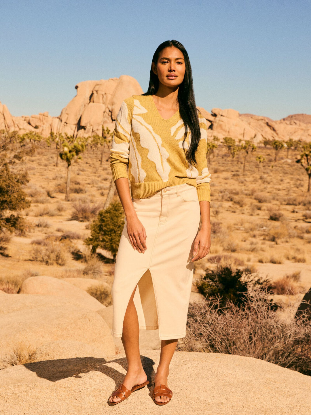 GEOMETRIC JACQUARD KNIT MIDI SKIRT