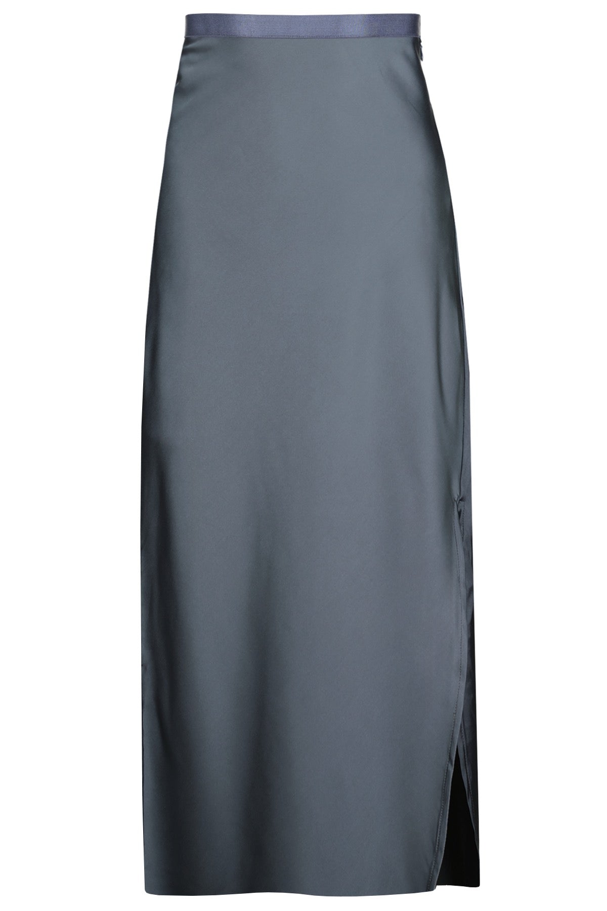 The Bias Cut Slip Skirt offers a refined silhouette with a high waist and subtle front slit, enhancing both comfort and style. Crafted from 100% polyester, it features an invisible side zip and an elasticized waist for a flawless fit. This skirt pairs effortlessly with a simple tank and flats or can elevate your look for more striking occasions. Designed true to size, it requires gentle care: hand wash cold and hang to dry to maintain its sleek appearance.