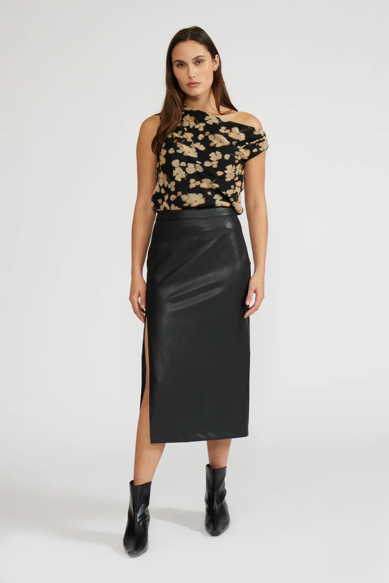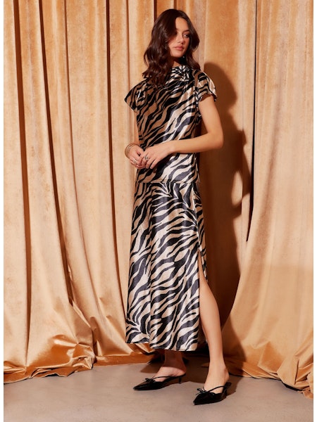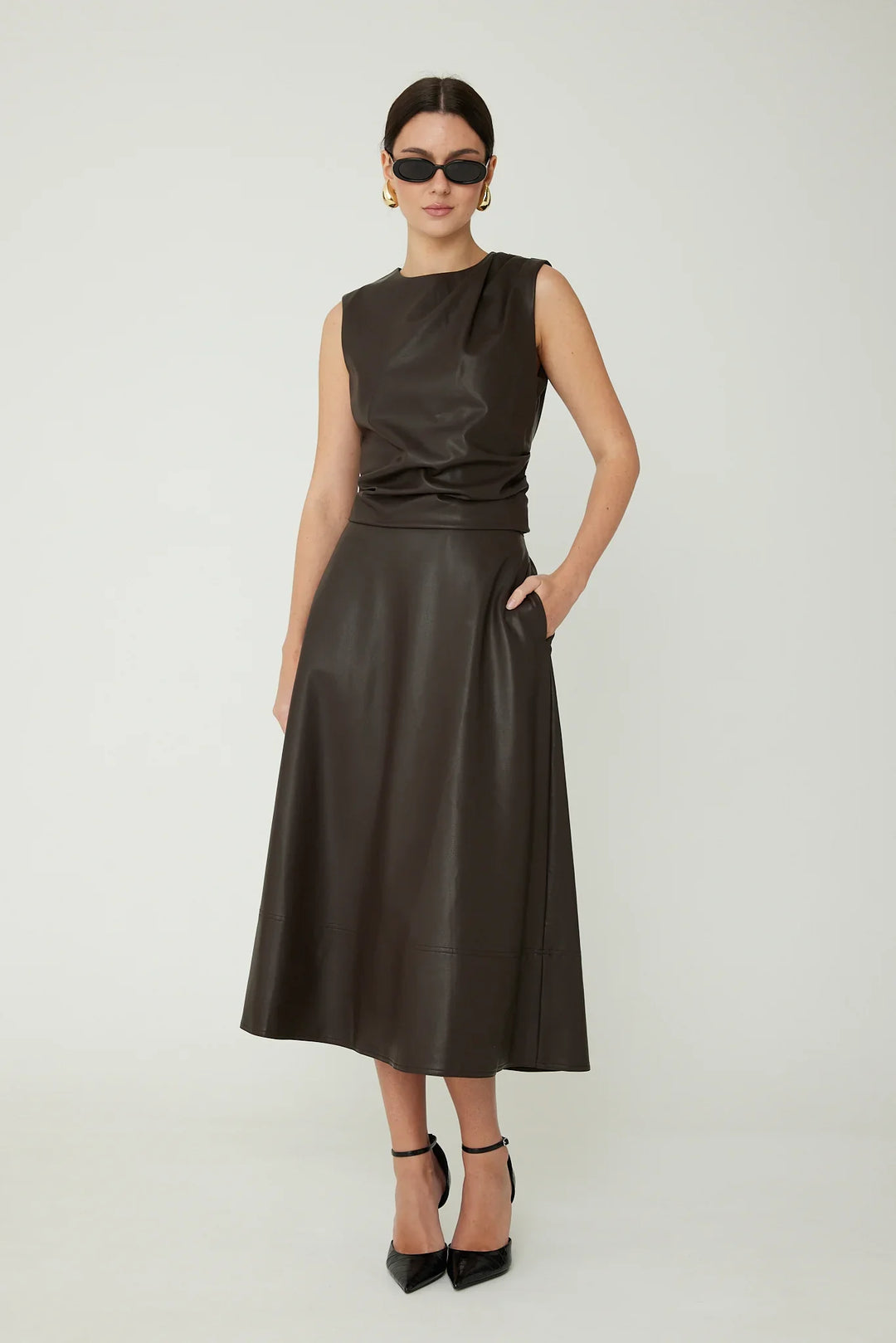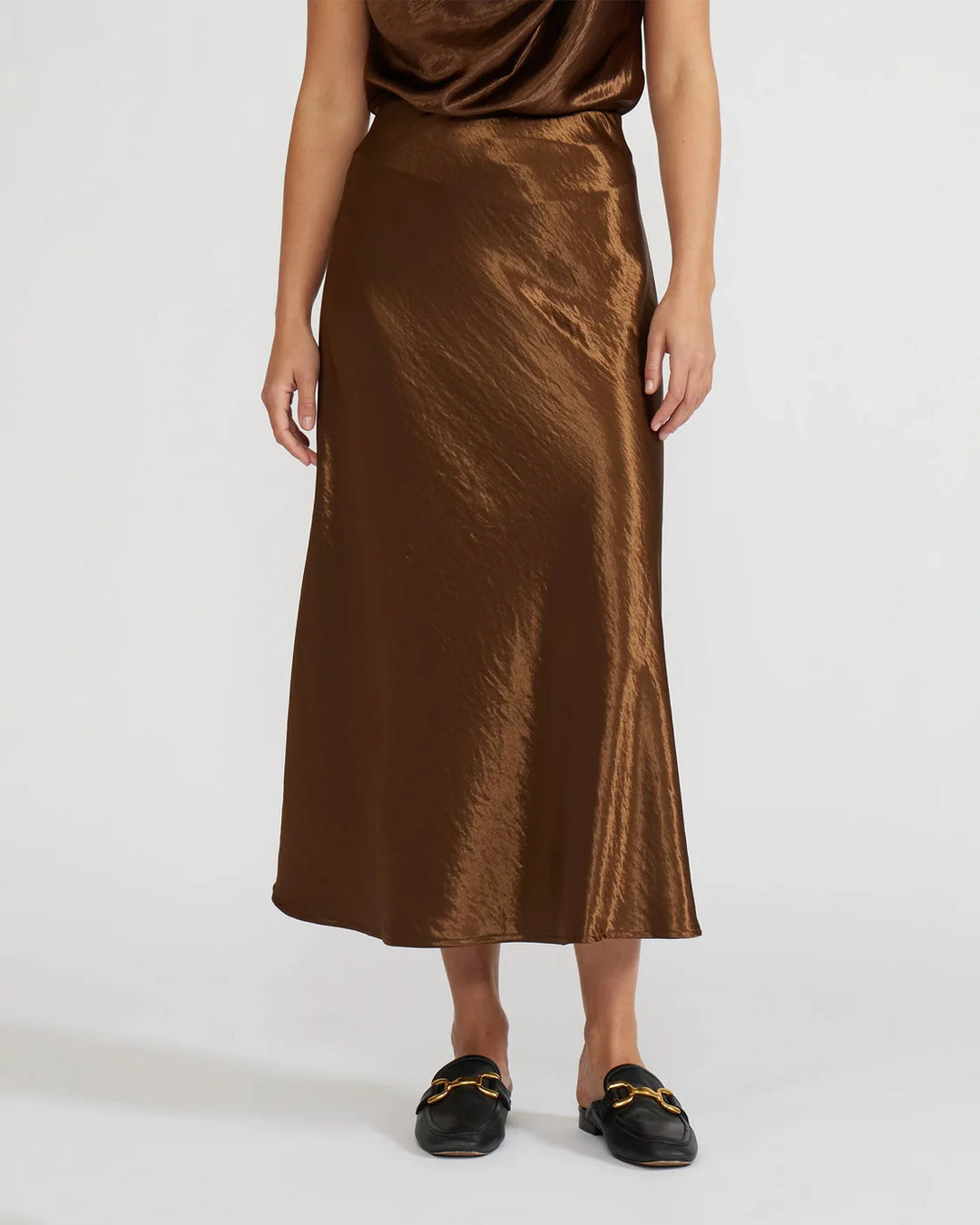 Sabrina Square Pattern Midi Straight Skirt; Mocha