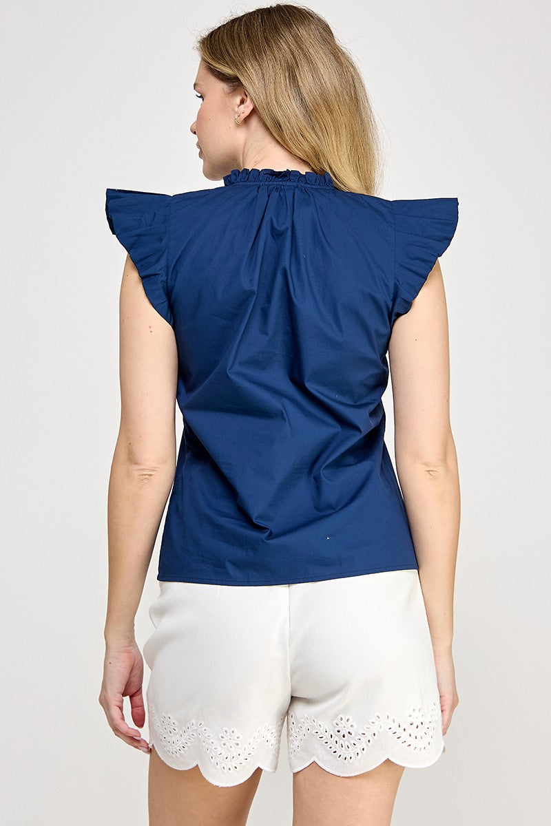 Elevate your wardrobe with this refined cotton blouse, featuring delicate border embroidery and charming frilled cap sleeves. The flattering V-neckline with elastic detailing ensures a comfortable, secure fit throughout the day. Crafted from 100% pure cotton, this versatile piece transitions effortlessly from office to weekend gatherings, offering both elegance and breathability for year-round wear.