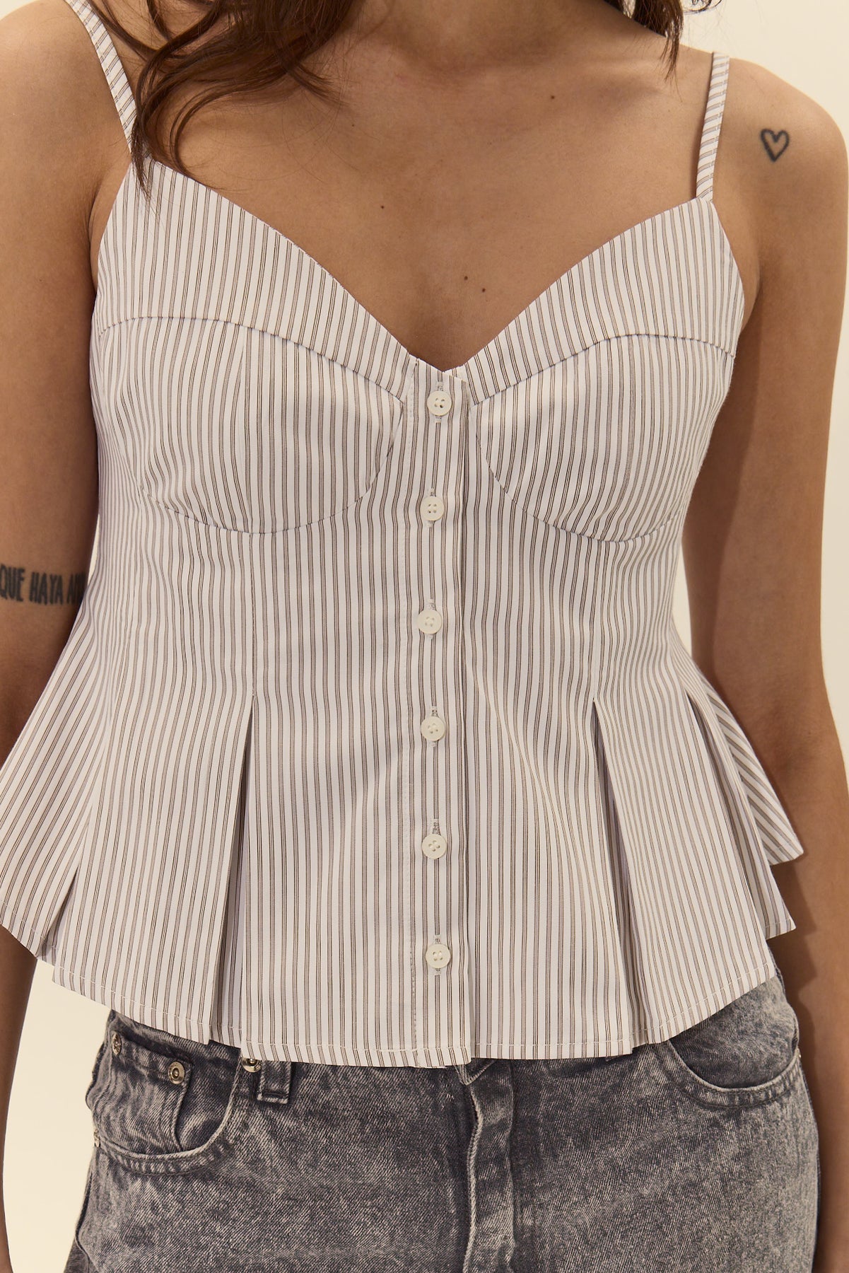 The Corvo Top is a sophisticated V-neck tank designed for effortless warm-weather style. Featuring a flowy silhouette with charming stripe detailing and button-up front, this piece transitions seamlessly from casual daytime outings to evening plans. The relaxed fit and breathable fabric make it an ideal choice for staying cool and comfortable while maintaining an elevated, put-together look.