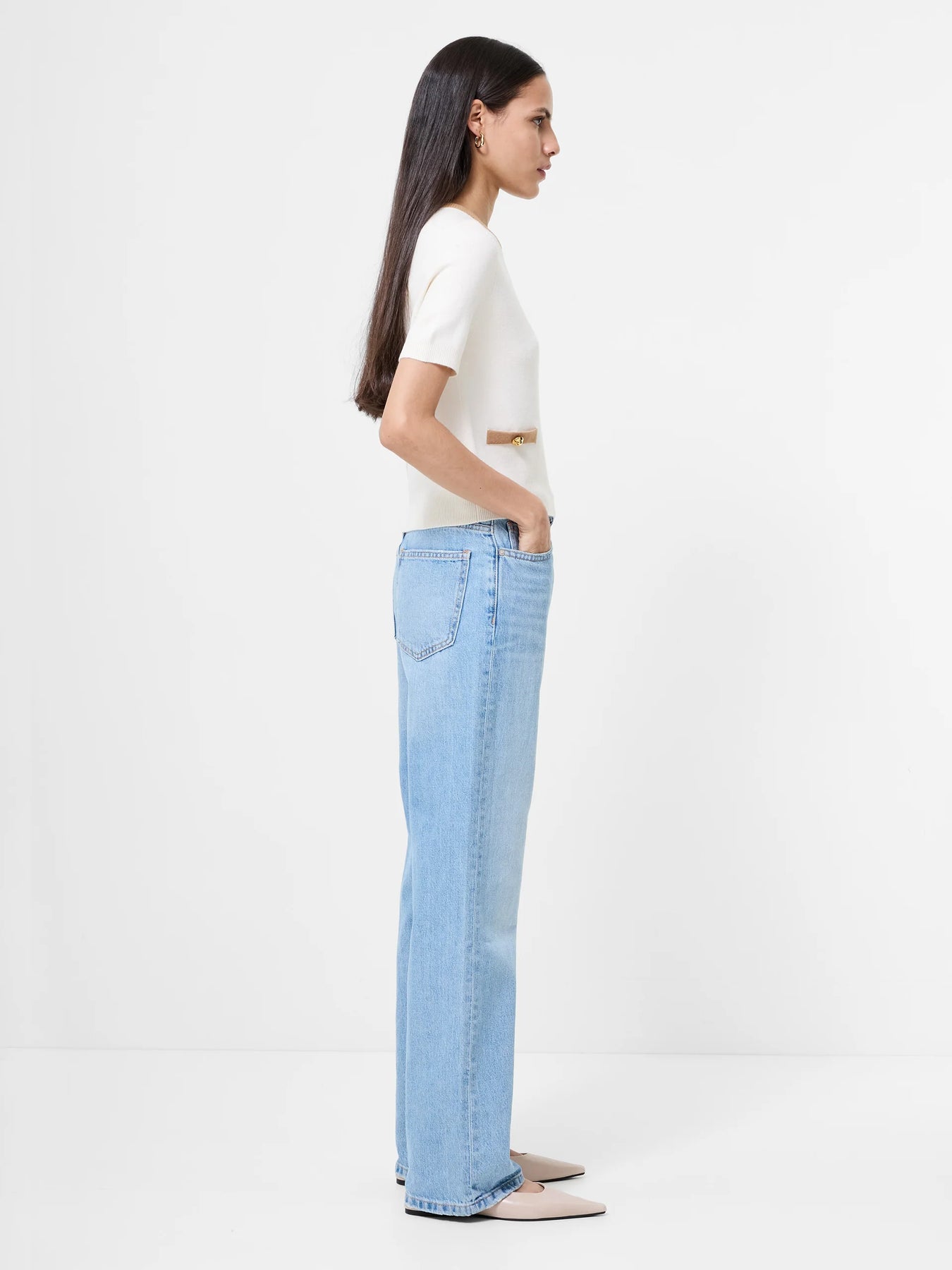 Introducing our Babysoft Short Sleeve Top, perfect for adding a touch of charm to your wardrobe. Crafted from a soft, lightweight knit, it features elegant brown trim along the neckline and two front facing pockets for a classic contrast. This sweater effortlessly blends comfort with chic, making it an ideal choice for any occasion.