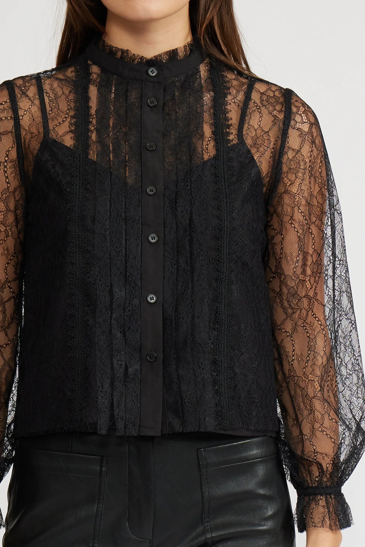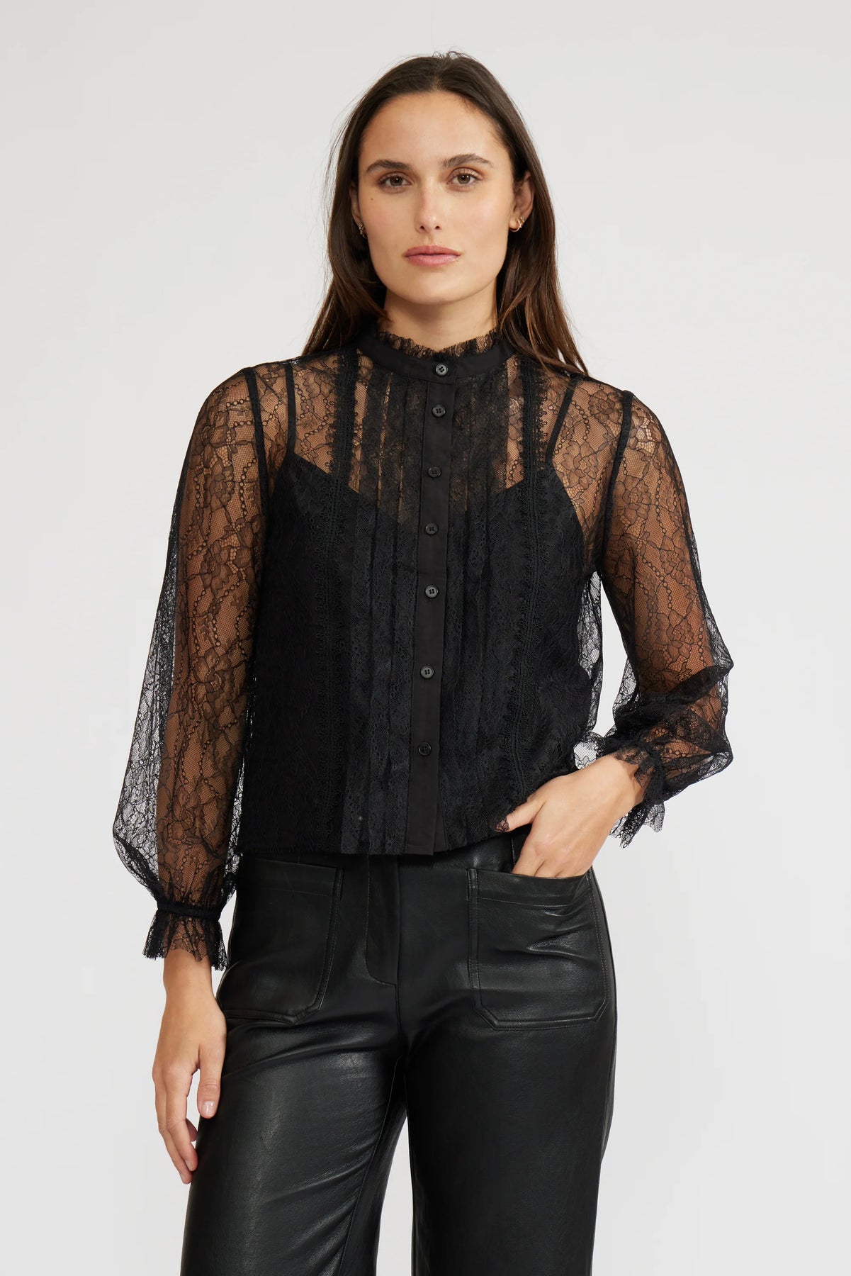 The Lizette Long Sleeve Lace Top offers a refined, classy silhouette with its button-up high neck and delicate lace detailing. Perfect for evening occasions, this elegant piece combines sophistication and chic style, making it an ideal choice to elevate your wardrobe with timeless grace.