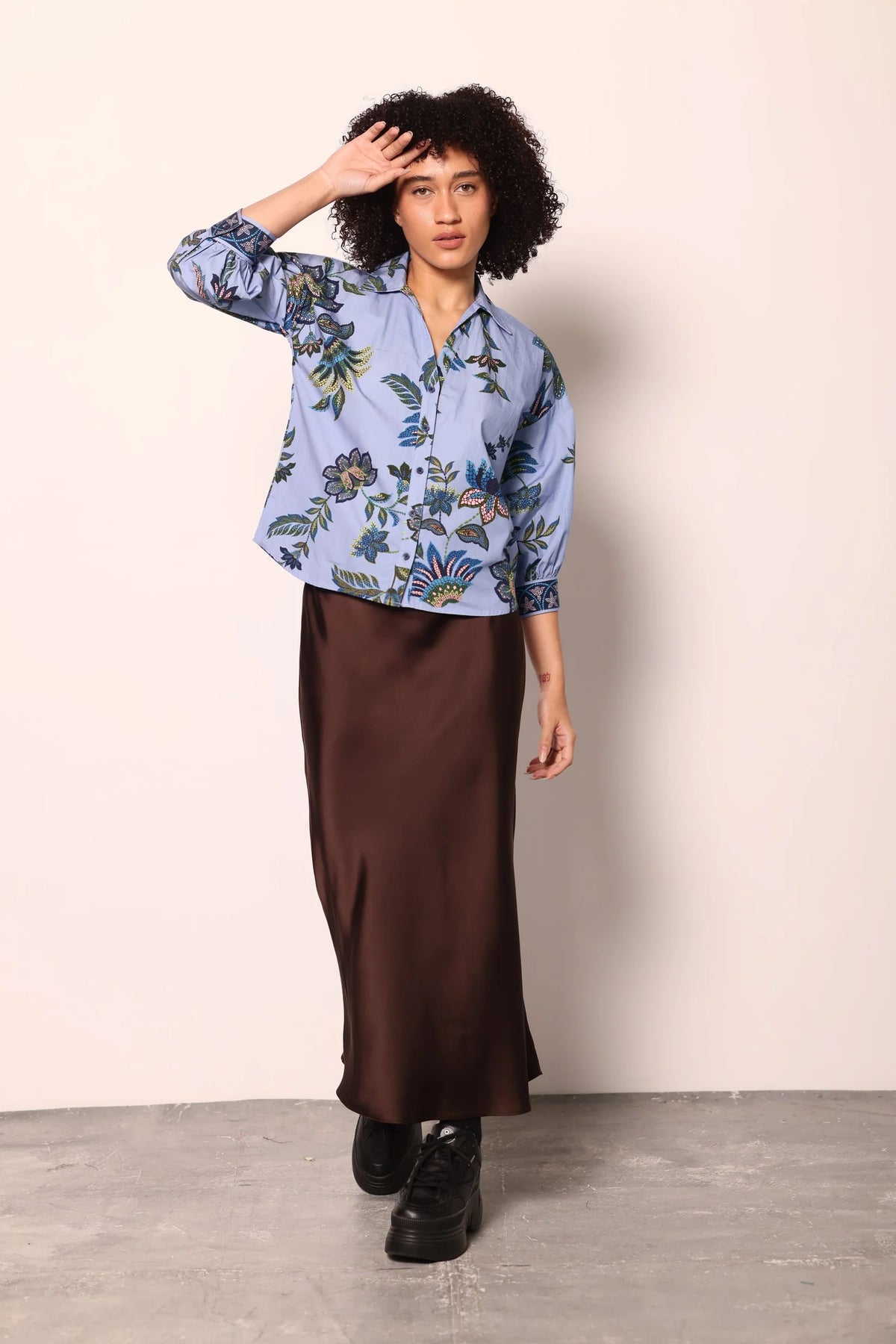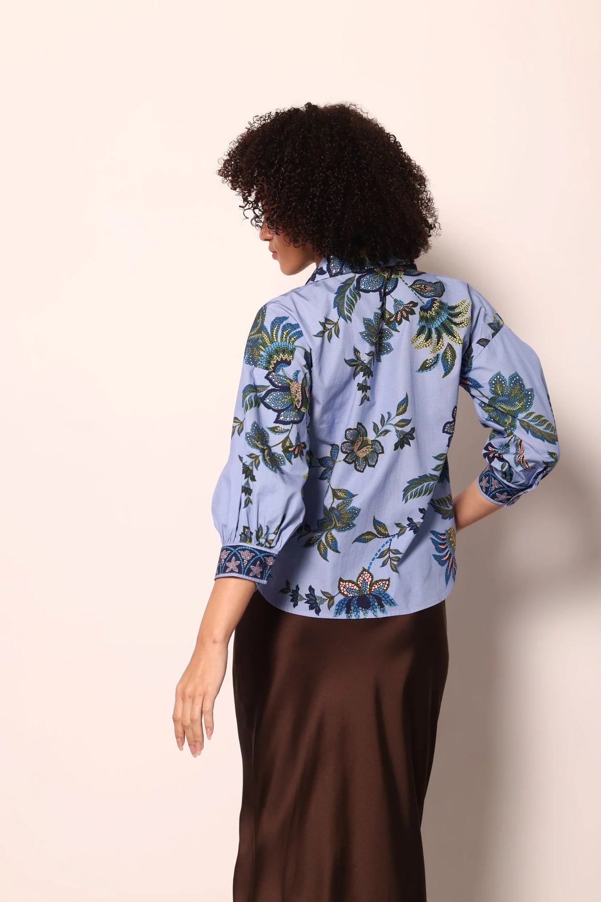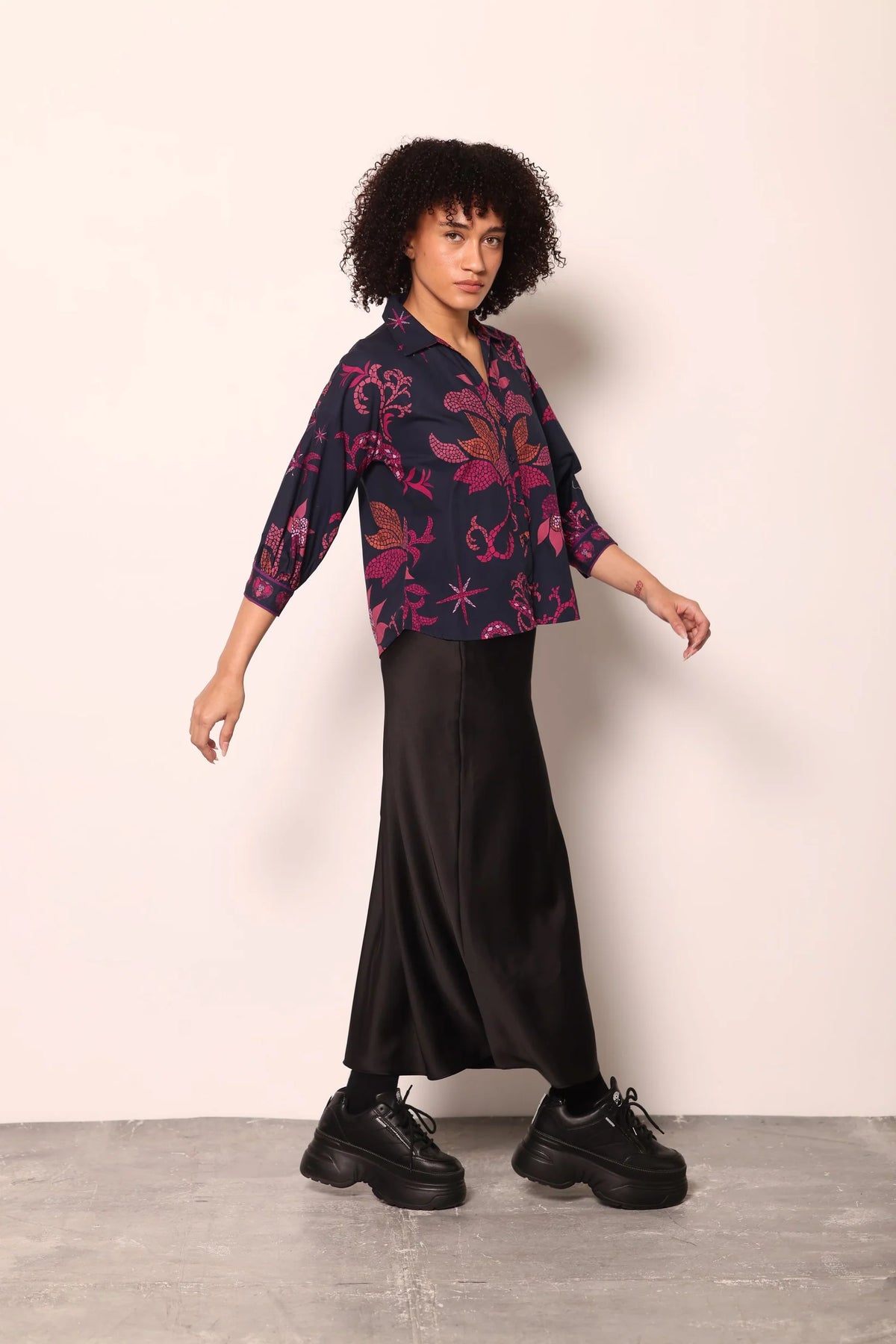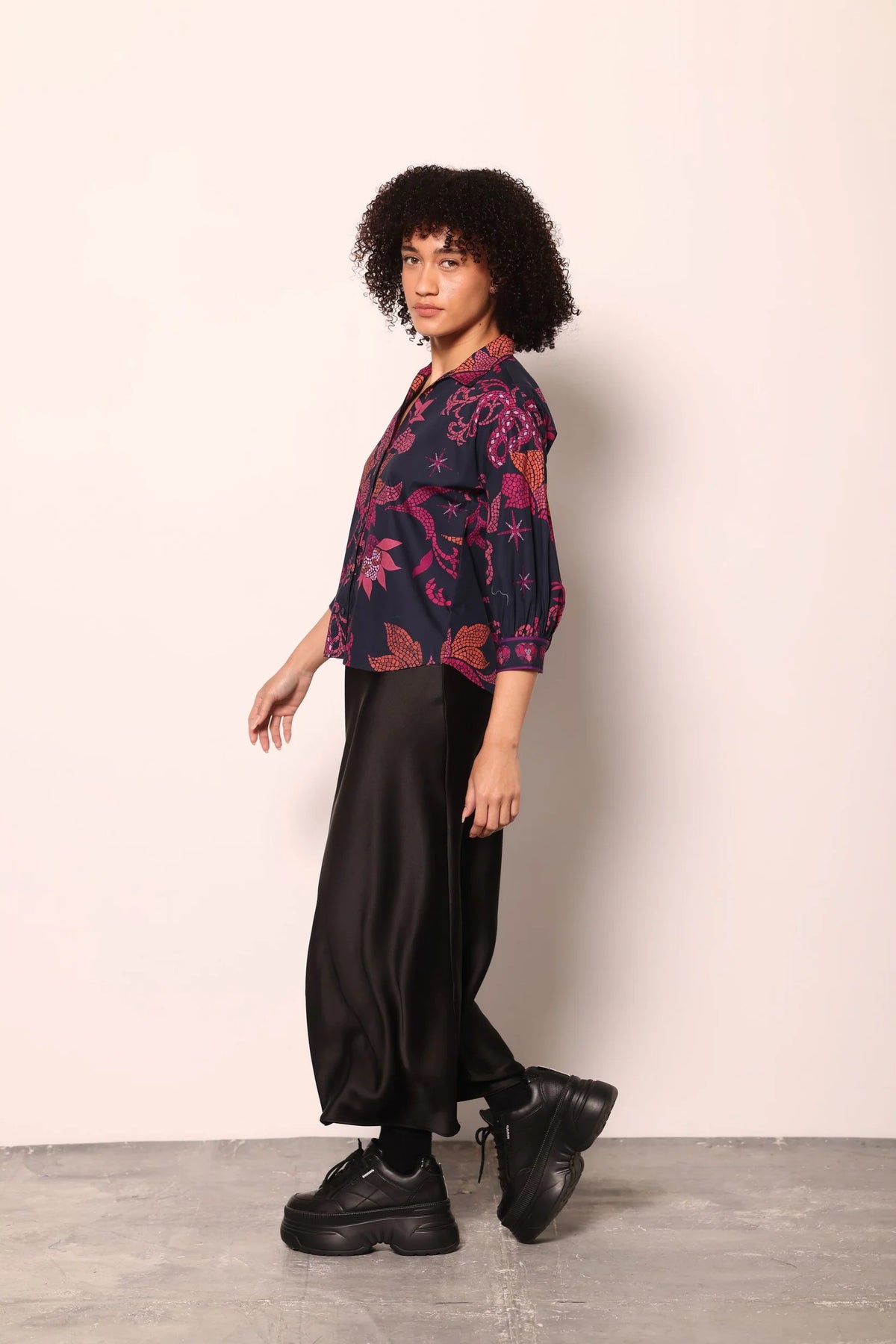 The Elsa Top brings contemporary flair to your everyday wardrobe with its striking bold print and vibrant color palette. This collared button-up features three-quarter sleeves for versatile layering and a polished silhouette that transitions seamlessly from office to weekend. The modern design makes it an effortless statement piece that pairs beautifully with neutrals or coordinates with complementary prints for a curated, fashion-forward look.