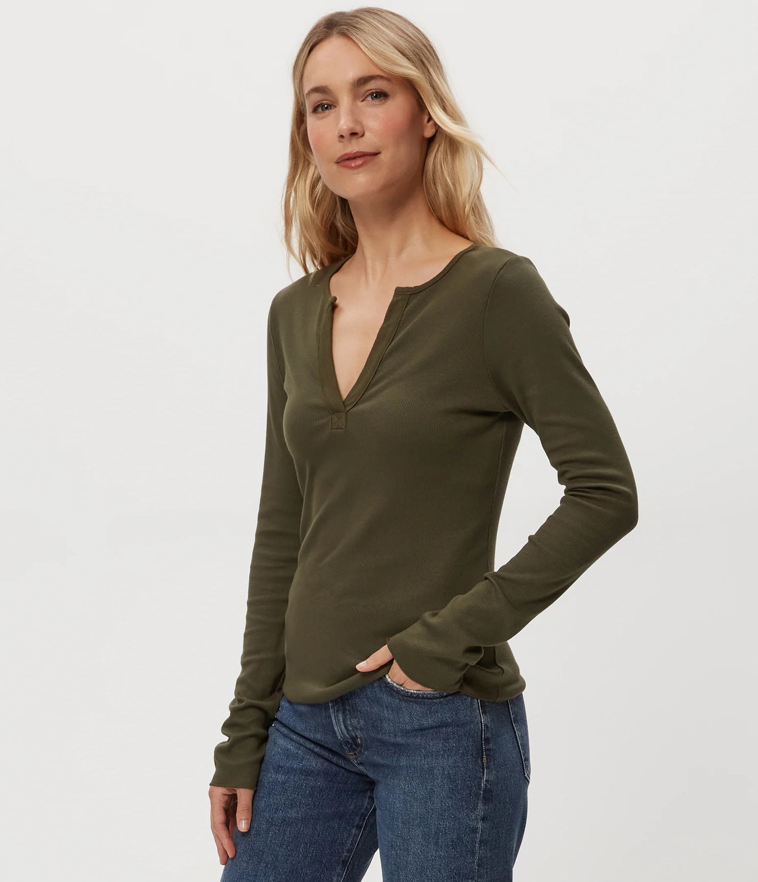 The Salem Mixed Placket Henley redefines everyday elegance with its ultra-soft ribbed fabric and refined fit. Featuring a delicate lettuce edge hem, long sleeves, and a split neckline accented with contrasting jersey, it offers a subtle yet sophisticated detail. Perfectly balanced for comfort and style, this versatile piece elevates your daily wardrobe with ease and grace.