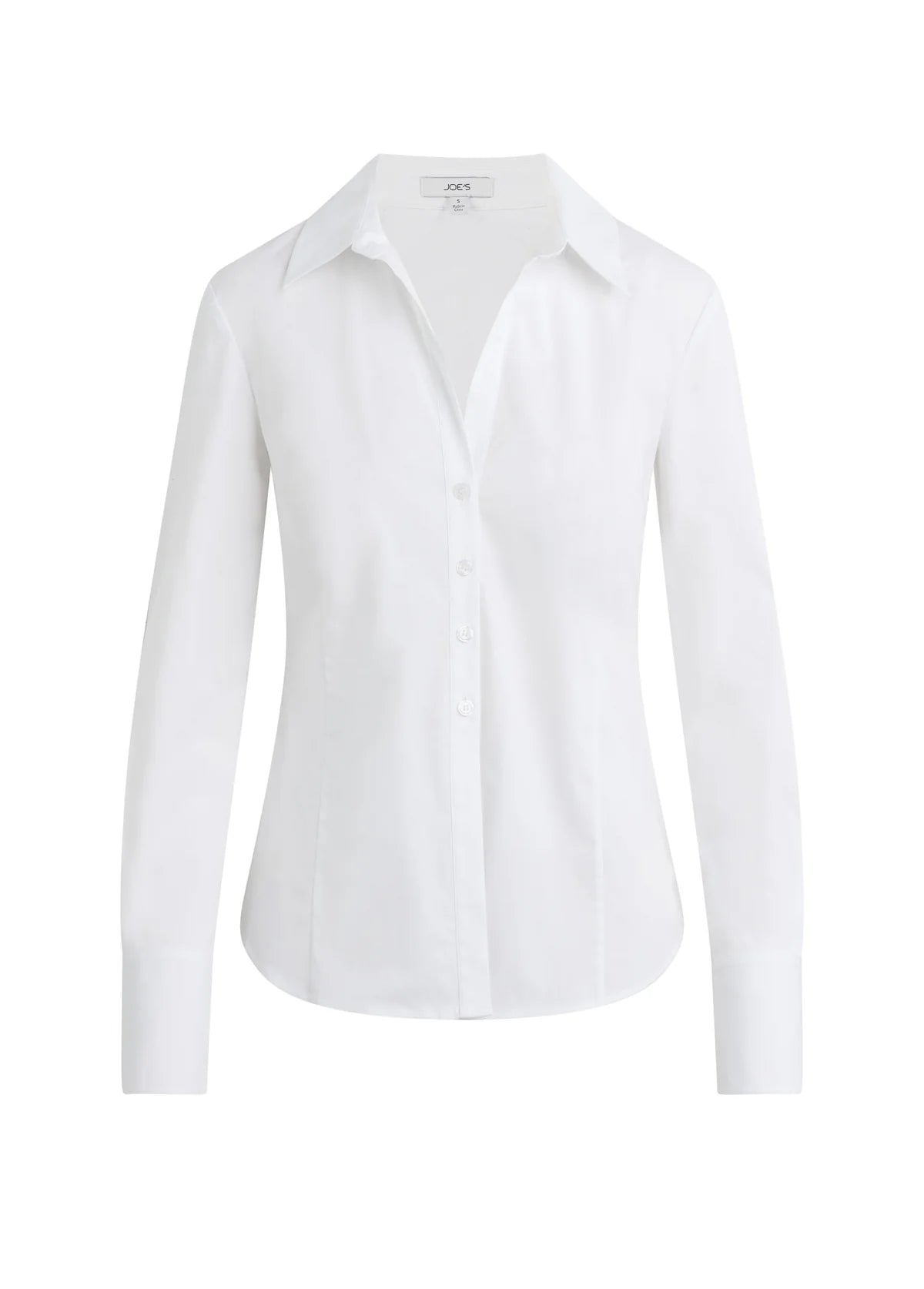 The Cora Slim Fit Shirt elevates the classic poplin with a tailored, waist-accentuating silhouette. Featuring a traditional collar and stand, slim sleeves, and an elegant 4-button closure, it offers a refined, modern look. Exaggerated cuffs and fisheye darts provide a tailored finish, while the subtle split hem allows versatile styling. A sophisticated essential for those who appreciate timeless design with a contemporary edge.