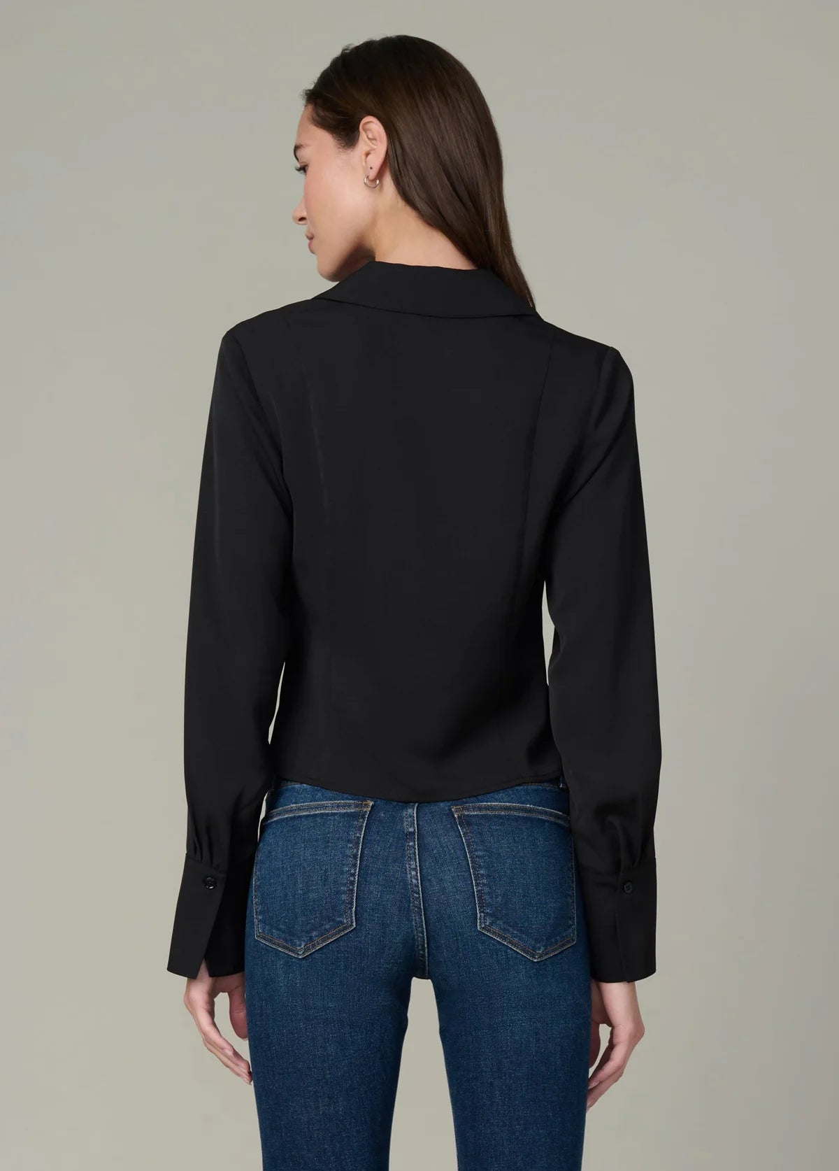 Elevate your wardrobe with The Iris Blouse, featuring a refined notch lapel and a waist-accentuating button-front closure for a tailored silhouette. Its long sleeves end in exaggerated split cuffs, adding a subtle touch of drama to the mid-length design. Perfect for sophisticated, polished looks from day to evening.