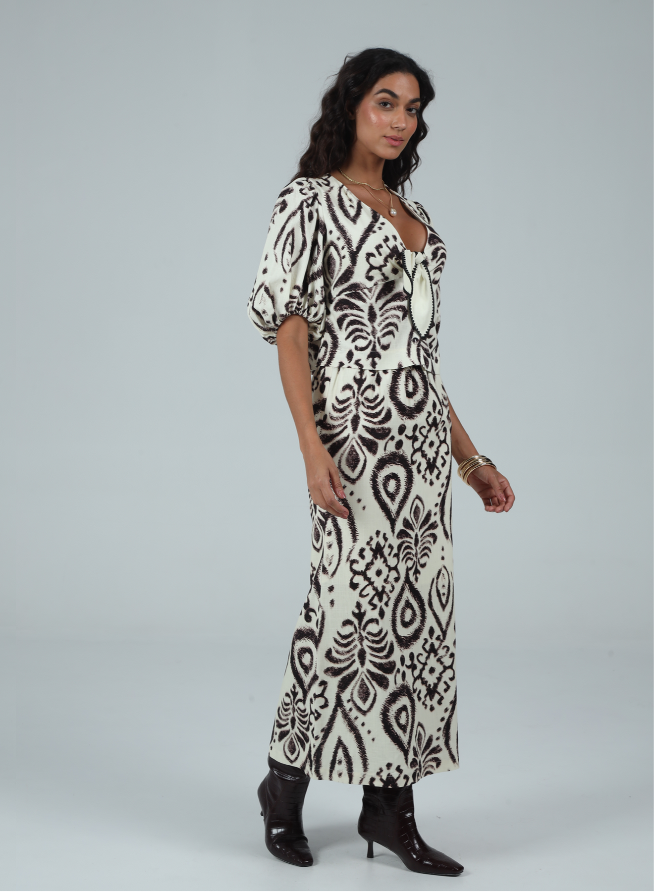 The TOGO TOP combines elegance and ease with its sophisticated V-neck and delicate front tie detail. Featuring short, puffy sleeves and a printed, flowy silhouette, it offers a graceful fit that moves effortlessly. Perfect for elevating your everyday wardrobe with a refined touch.