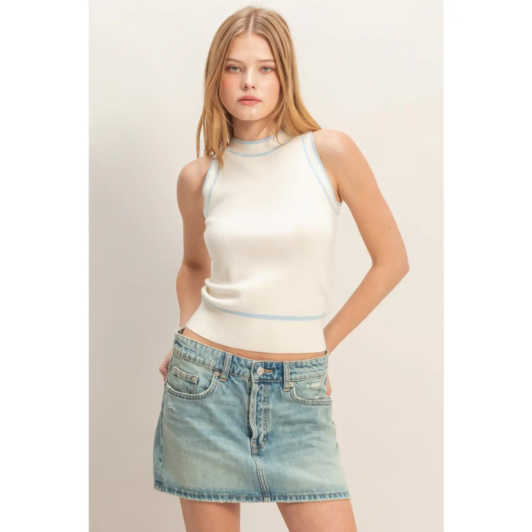 CONTRAST TRIM SLEEVELESS RIBBED TOP