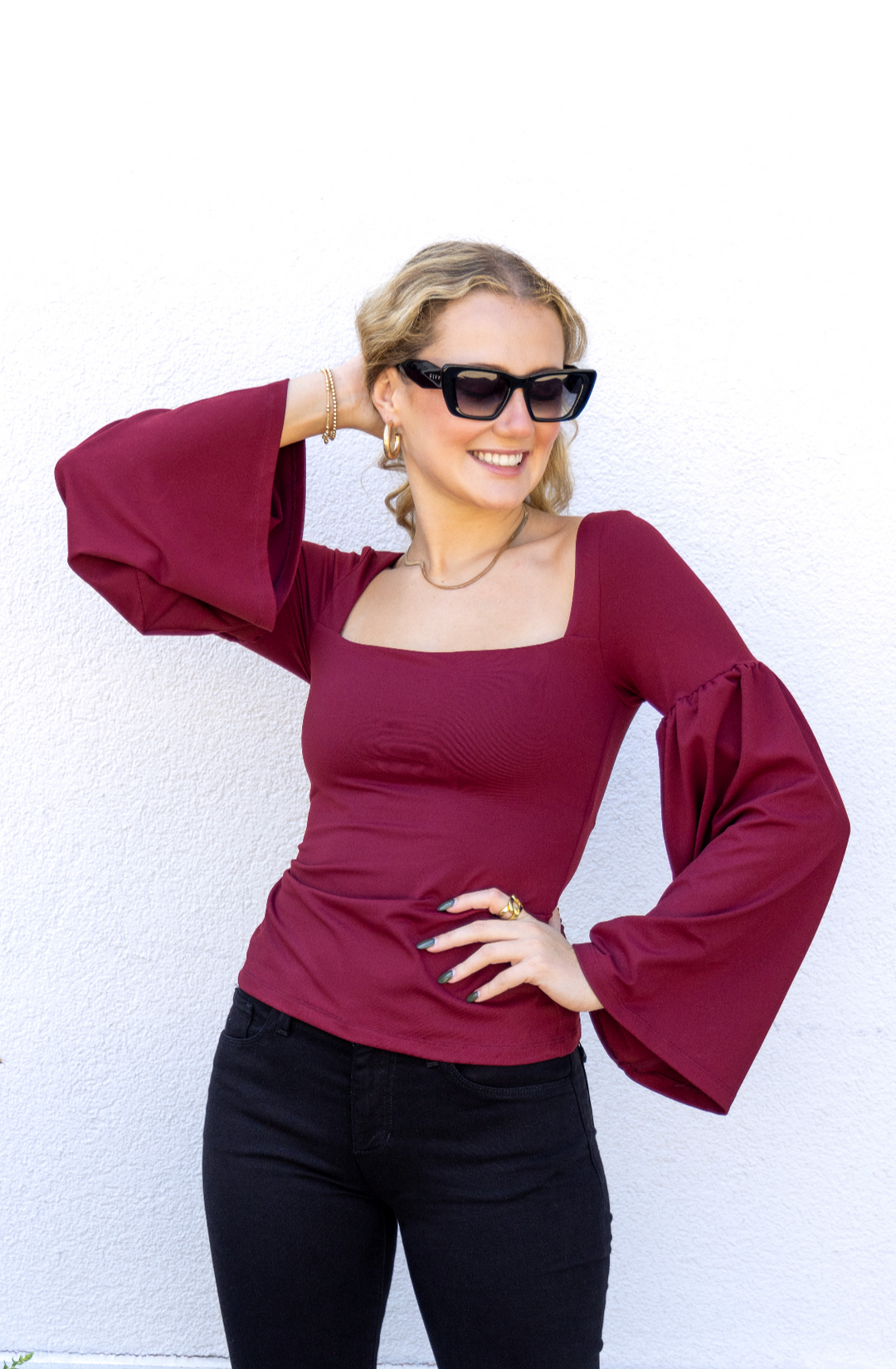 HUSTLE HIGH SQUARE NECK LONG SLEEVE KNIT TOP