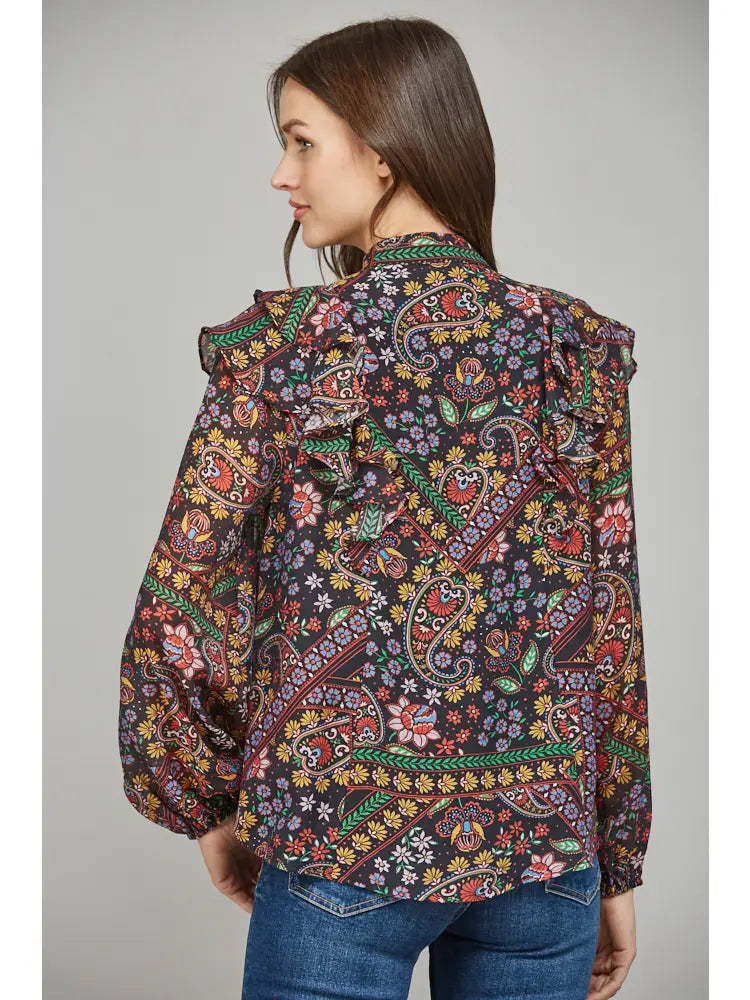 RUFFLE DETAIL STAND COLLAR BLOUSE