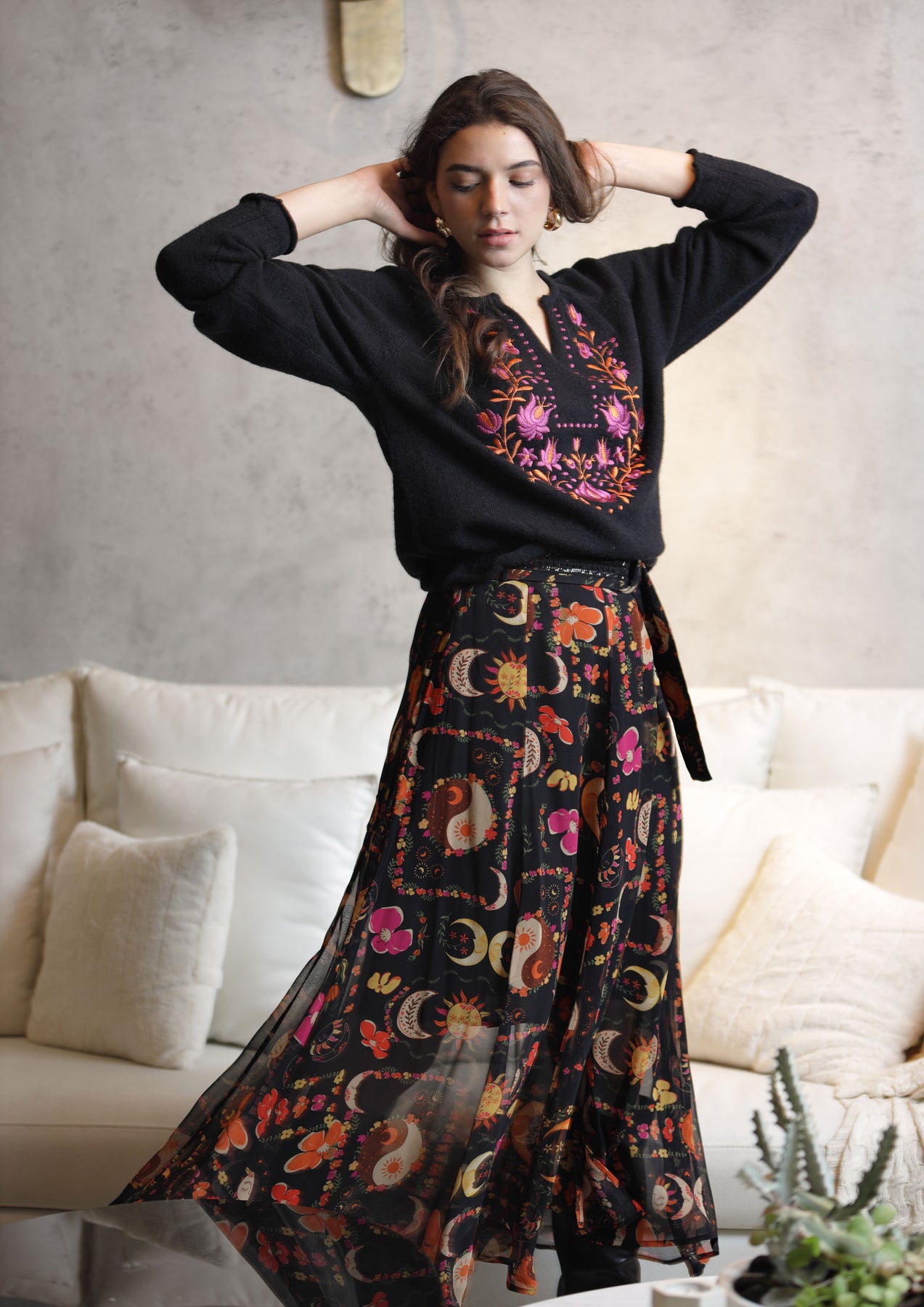 Elevate your wardrobe with the Bella Skirt, a belted midi maxi skirt featuring a striking bold print. Designed to flatter with a defined waist and flowing silhouette, this skirt combines elegance with a contemporary edge. Perfect for sophisticated occasions, it offers both style and comfort in one refined piece.
