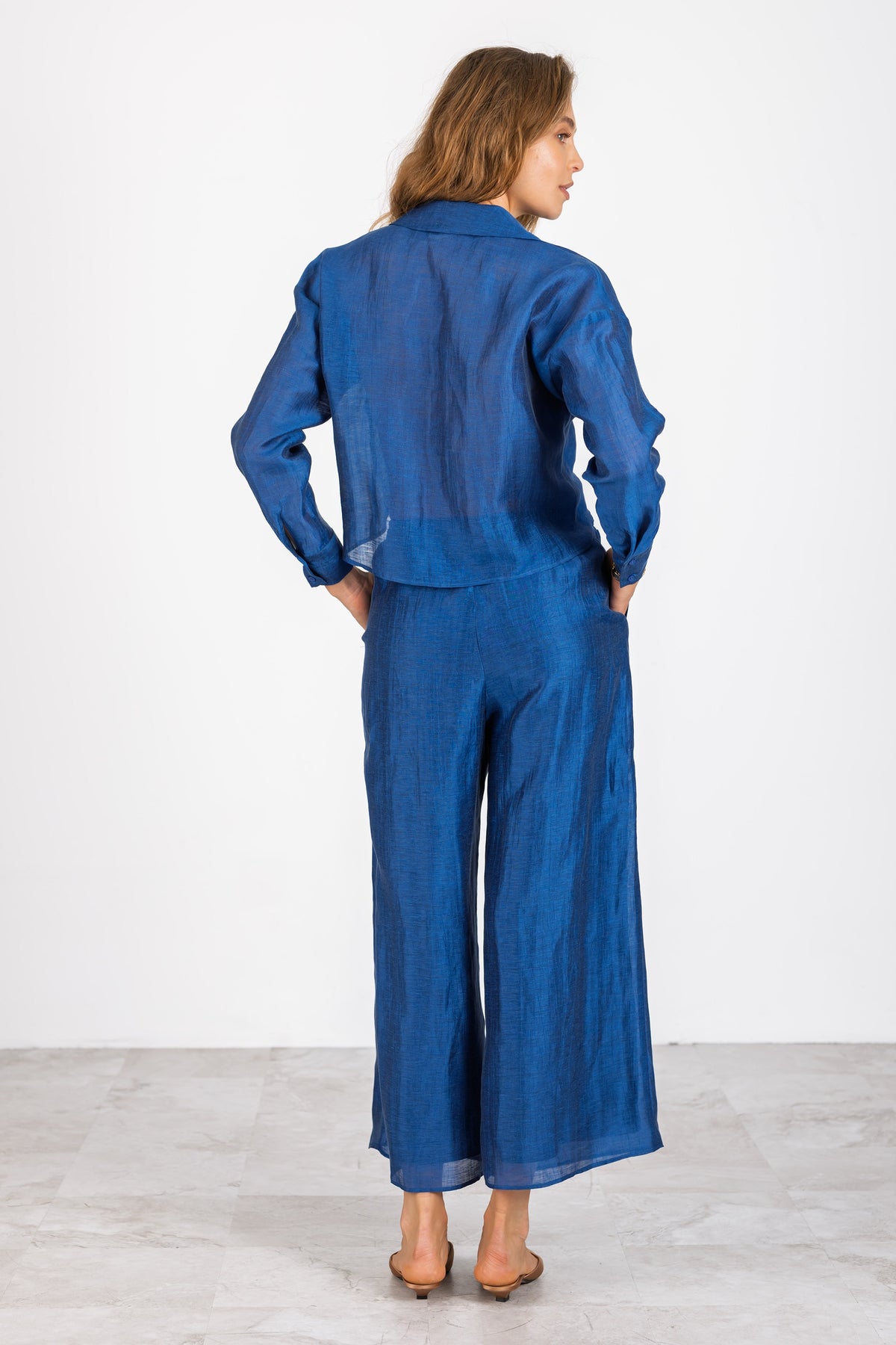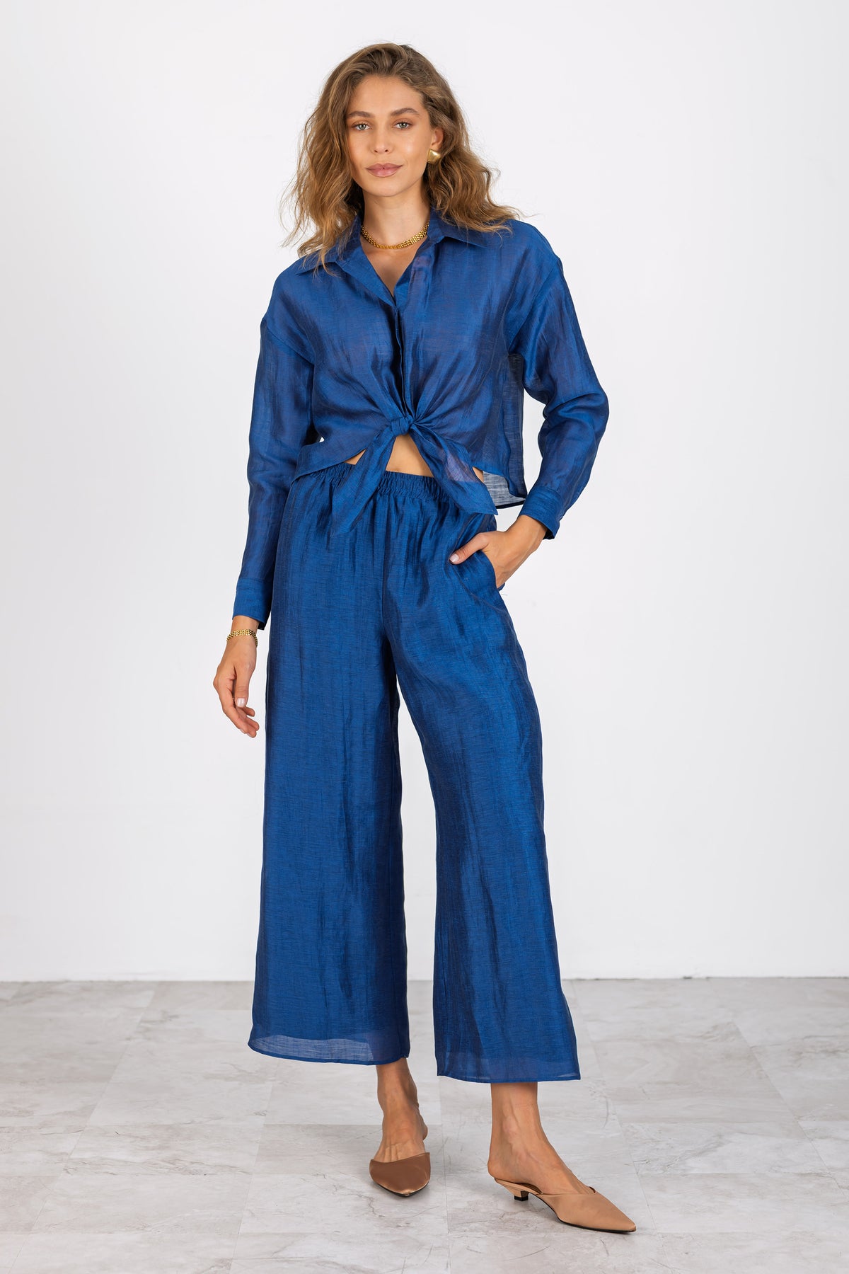 The Aiyana Top combines European linen-blend sophistication with effortless style. Crafted from 86% linen and 14% poly, this front-tie collared long sleeve features a flattering V-neck silhouette that transitions seamlessly from day to evening. The breathable fabric drapes beautifully while maintaining its shape, making it an essential layering piece for any refined wardrobe. Perfect for those who appreciate quality construction and timeless design.