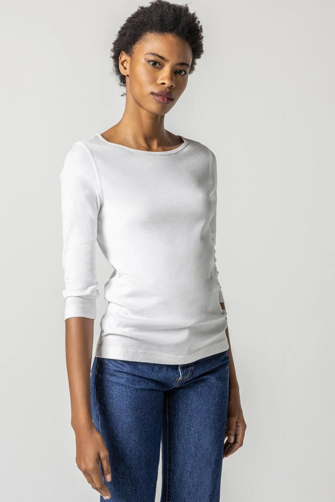 SHIRRED SHOULDER SCOOP NECK